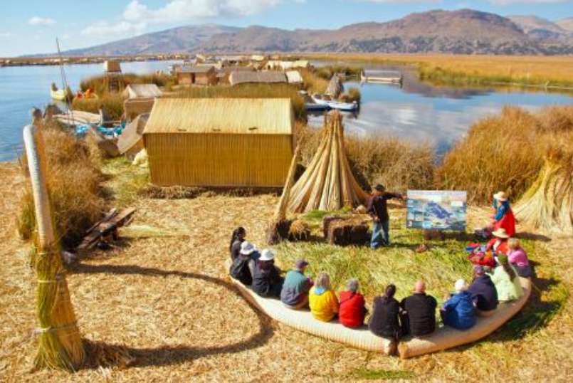 它是以芦苇为基材建造的浮岛,距普诺市六公里,岛上居民以捕鱼和手工艺为生。该地亦被视为的的喀喀湖旅游推广的核心地标,每年吸引数千游客前来体验当地居民的生活习俗,开展深度文化之旅。