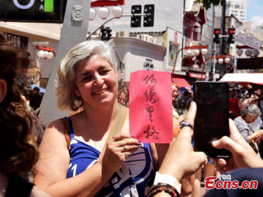 Pessoas participam de uma feira do Ano Novo Chinês na Praça da Liberdade, em São Paulo, Brasil. (Foto: CNS)