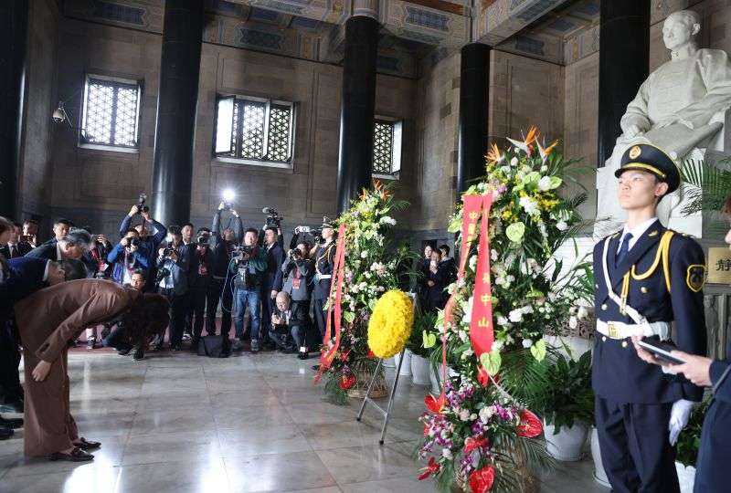 Cheng Li-wun, presidente do partido Kuomintang Chinês (KMT), liderou uma delegação do KMT na manhã desta quarta-feira (8) para prestar homenagem no Mausoléu de Sun Yat-sen em Nanjing, capital da Província de Jiangsu, no leste da China.