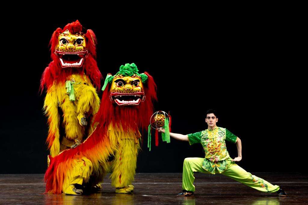O estudante brasileiro Miguel de Oliveira Manacero está apresentando a dança do leão. (Foto fornecida pelo entrevistado)