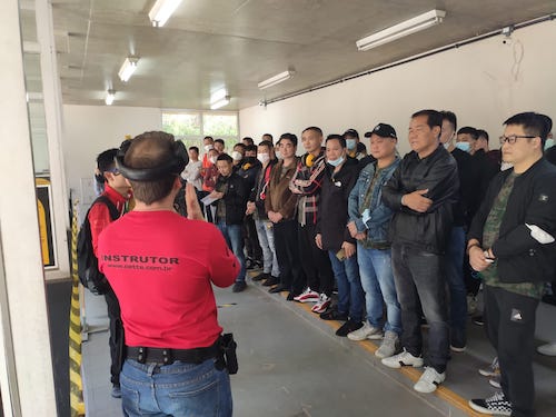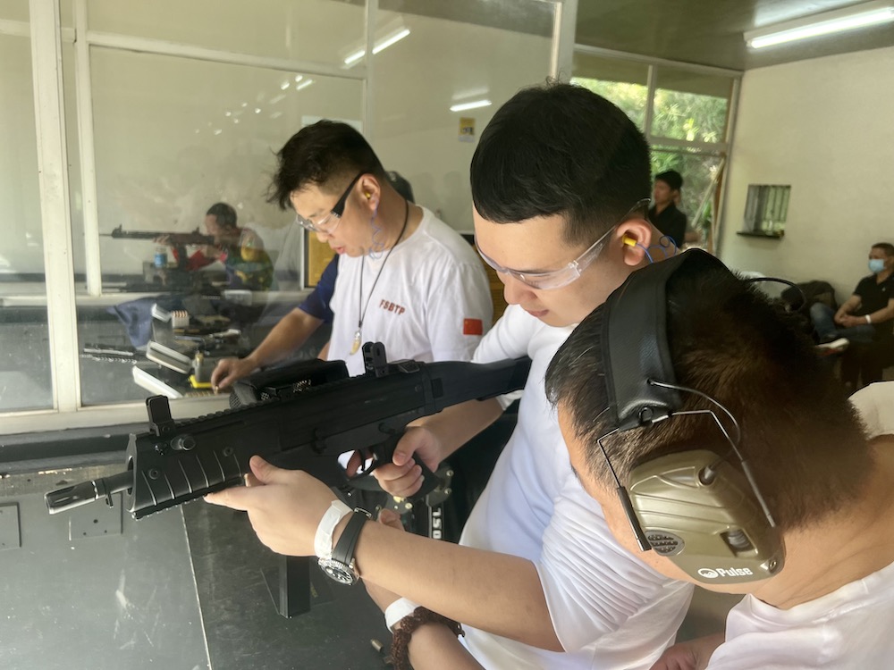 在实弹射击训练前,俱乐部的巴西教练介绍了射击基础知识、实操安全常识,以及枪械构造等知识和注意事项。讲解全程由射击协会骨干诸诗琦律师担任翻译。