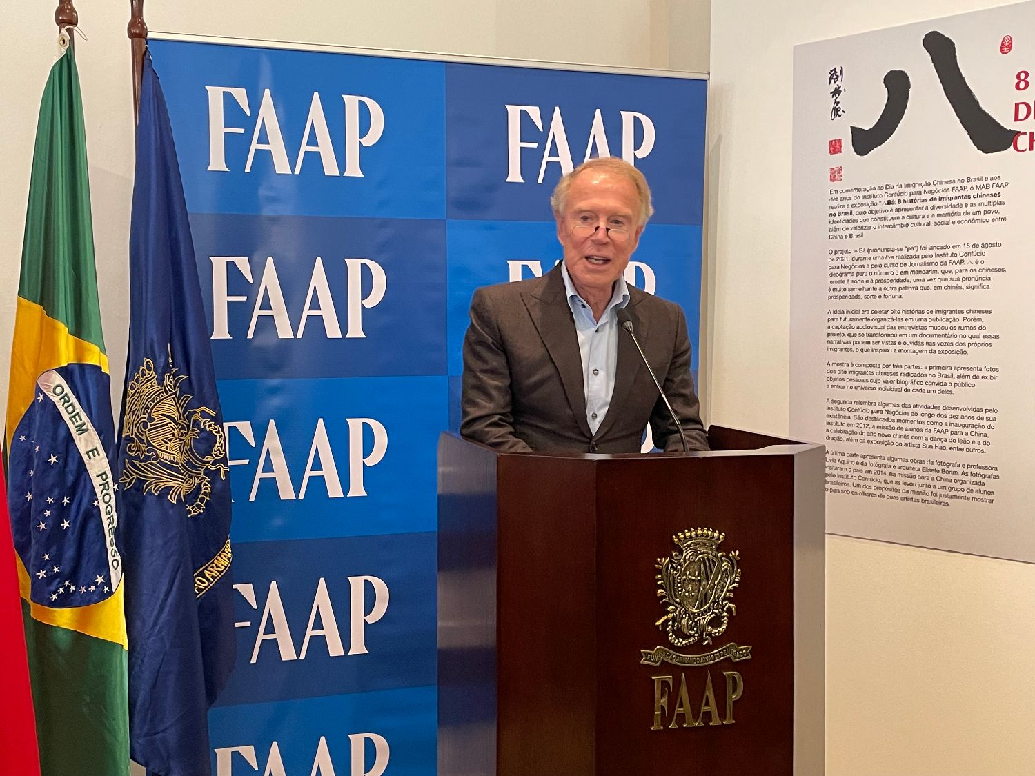 本次展览的负责人Edilamar教授介绍道,本次展览多亏了这8位有故事的人,才使得展览更加生动。FAAP是一个充满人文气息的学府,也就是在这样一个充满历史感和人文感的地方,我们策划了这场以华人华侨移民为主题的展览。不久,相关纪录片也将出品。在此我要感谢所有参与这场活动的人们,没有大家的工作与支持就没有我们这场如此完美的展览。