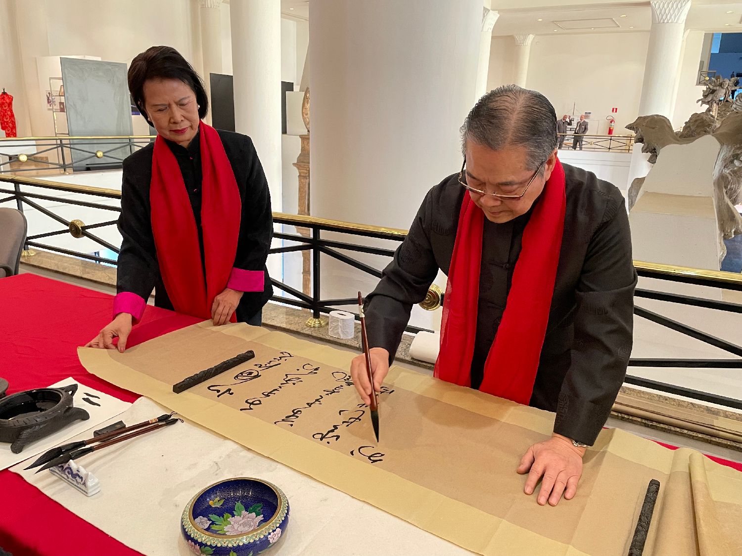总领事陈佩洁与巴西FAAP校长Antonio共同为展览剪彩,并在校长Antonio等人的陪同下与观众们一起参观了展览。