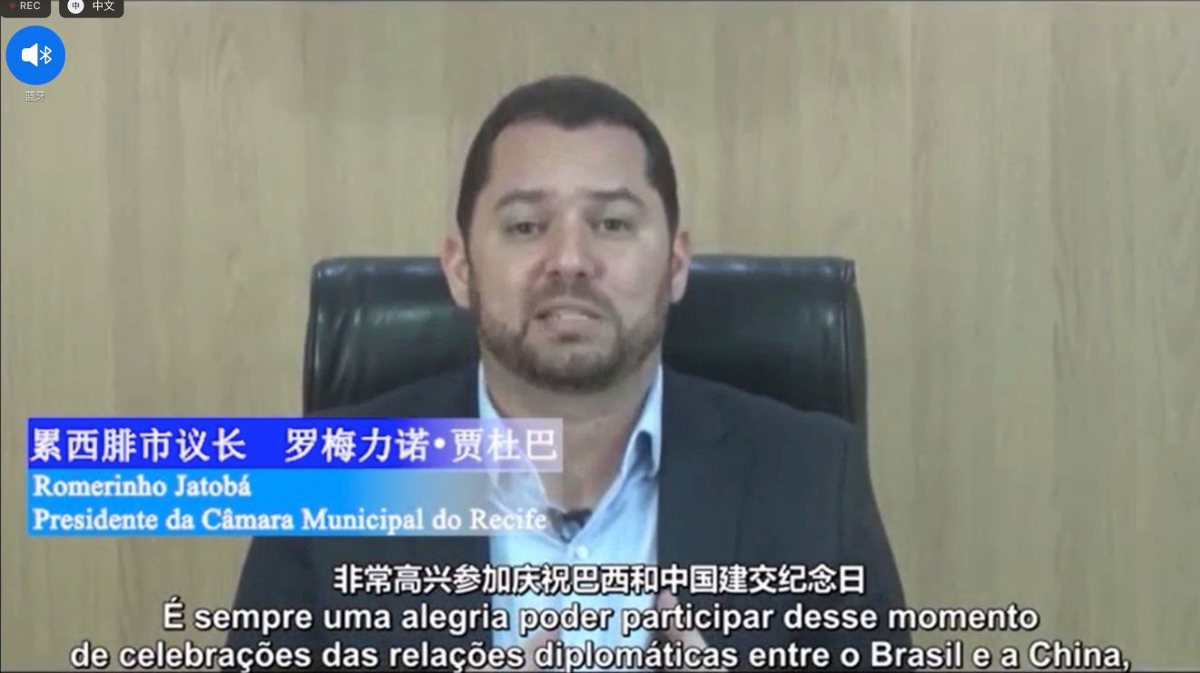 累市市议长Romerinho因工作无法同步出席活动,特发来视频致辞。在视频中指出,累西腓和广州两市关系不断加强,将最终造福两地人民。今年是中巴两国建交48周年,巴西是第一个同中国建立战略伙伴关系的发展中国家和拉美国家,这给两国带来了富有成果的务实合作、文化交流,以及更加紧密的地方合作关系。两国建交以来,毫无疑问为我们带来了稳固的关系,在多个领域建立了合作伙伴关系。今年还是累西腓市和广州市结好15周年,累市是广州在拉美的第二座友好城市,中国在巴西的第三个总领事馆也在此设立,作为对中国侨民对这座城市所作贡献的认可,市议会向全体中国侨民致意。他表示,8月15日是巴西于2018年设立的“中国移民日”,在累西腓这一日期也通过市议会立法被确立为重要节日,即“累西腓市中国移民日”,这无疑代表中巴友谊。