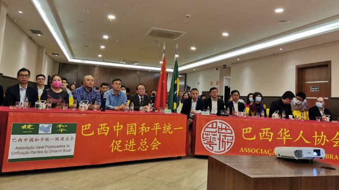 应大会邀请,巴西中国和平统一促进总会与巴西华人协会共同线上参会。在叶周永会长暨巴西华人协会的支持下,李锦辉会长率巴西中国和平统一促进总会主办了这次圣保罗共同会场,作为线上参加四川召开的全球大会的分会场。为此,经发动后,圣保罗各侨团和来自台海两岸的华侨华人的代表80多人出席,成为规模较大的海外分会场。因此,按照国内此次大会的部署,圣保罗分会场将作为海外重点分会场。