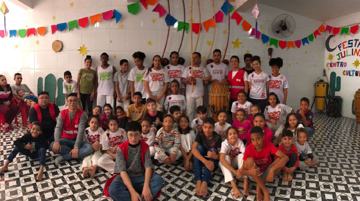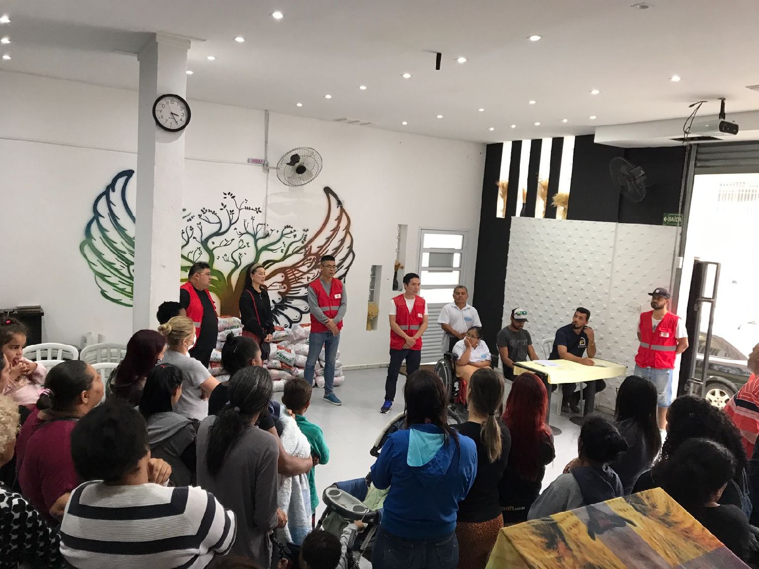 第一个受捐赠的贫民窟位于圣保罗大学附近,当地居民在贫民区里的一所巴西战舞馆领取食物篮,这所战舞馆的负责人Dumangue同时也是战舞老师,他向大家介绍道:“开办战舞馆的目的是为了让这些贫困的孩子能够多一个爱好,并引导这些孩子不要走上歪路”,他代表贫民区向我们中国人表示感谢,并安排了学员为我们表演了巴西战舞,孙总敏会长一行人也与学员们进行了互动。
