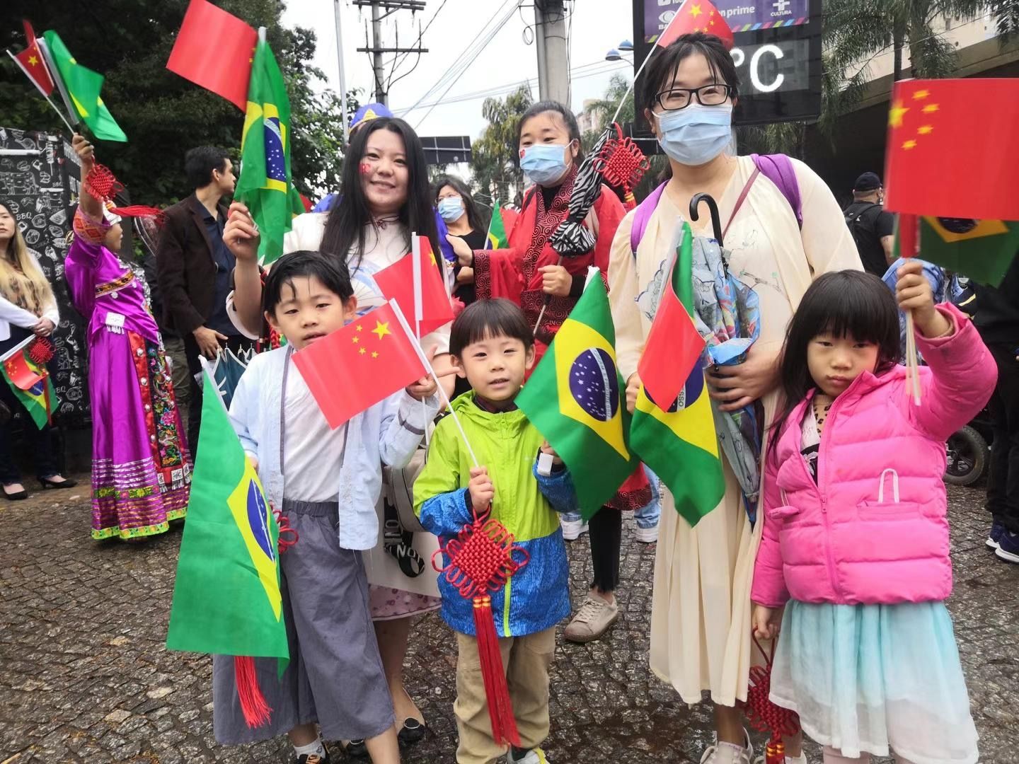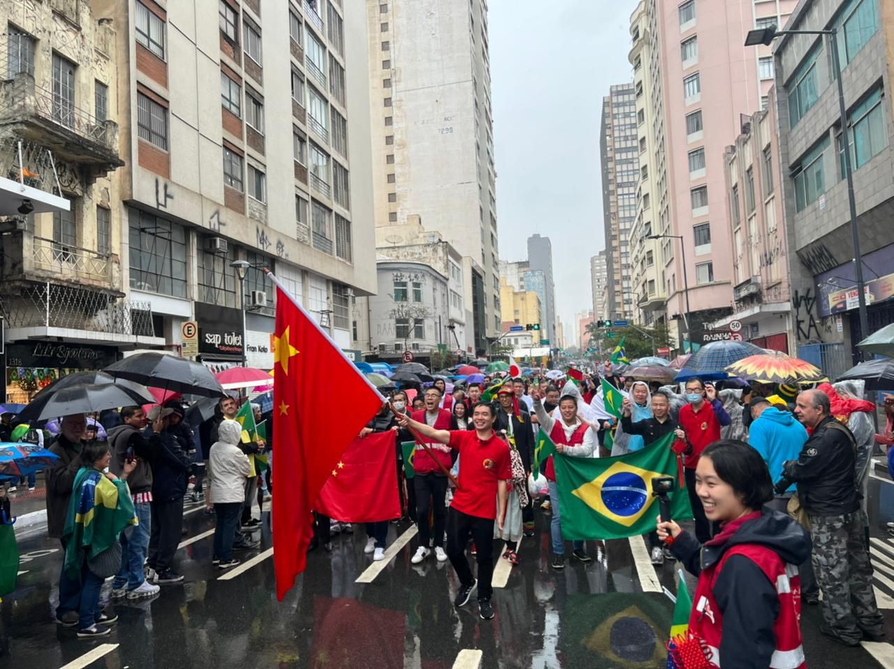 今天中巴慈善基金总会执行会长诸诗琦作为中国巡游队的执旗手,挥舞着鲜艳的五星红旗,带领着巡游队伍,一边前进一边高唱“中国国歌”和“我和我的祖国”,每一个人的手中都挥舞着中巴小国旗,当沿街的巴西民众高喊着:“中国加油,中国最棒!”作为中国人的自豪感油然而生!