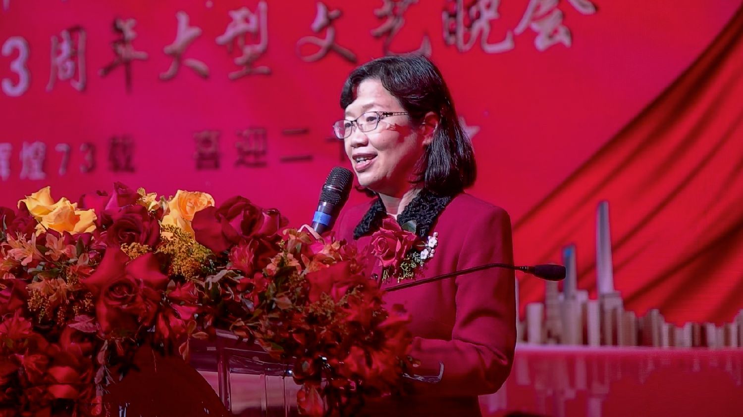 总领事陈佩洁在致辞时说,今天晚会主题是辉煌73载。73年来,中国人民在中国共产党领导下发奋图强,战胜各种艰难险阻,国家发展成就举世嘱目,并创造了社会长期稳定、经济持续发展两大奇迹。今年,中国有效统筹疫情防控与经济发展,成功举办北京冬奥会和金砖峰会,令我们为之骄傲。今年还有一件重要大事,就是即将召开的二十大,这是在中国踏上新征程、向第二个百年奋斗目标进军的关键时刻召开的一次十分重要的大会。大家都在关注着,并以各种形式表达喜迎的心声。