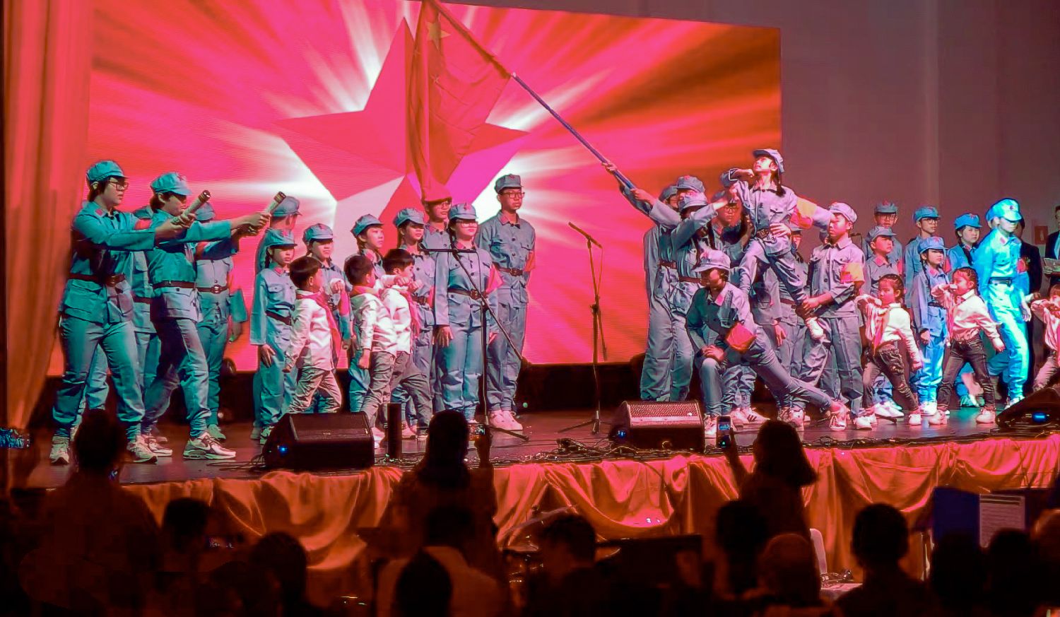 幼华学园的孩子们带来的小合唱《红星闪闪》,在稚嫩洪亮的歌声中,飒爽英姿里,不仅让在场的观众沐浴在“旗闪闪放光彩,红旗闪闪暖胸怀…”党的光芒中,也让孩子们从小培养了爱国精神。