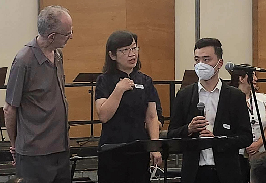 陈总领事的讲话极大鼓舞了交响乐团60多位乐手和在场的华人艺术家们,在热烈的掌声尚未平息之时,陈总领事毛遂自荐,拿起了话筒,用英文唱起了《友谊地久天长》。她清脆甜美的歌声一下子拉近了与巴西乐手们的距离,排练场顿时变得轻松愉悦,其乐融融。