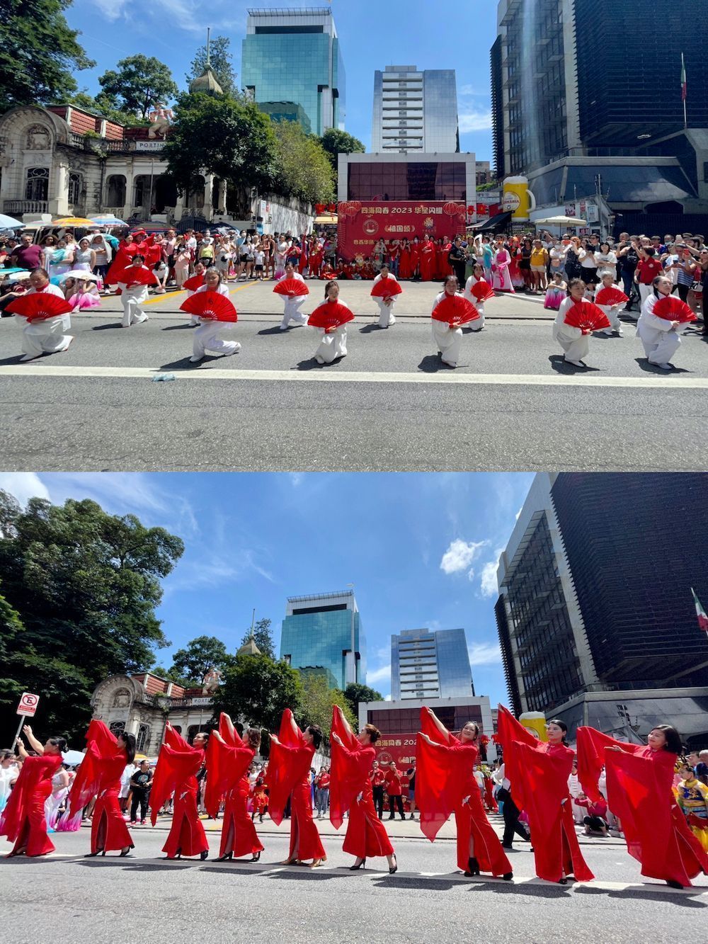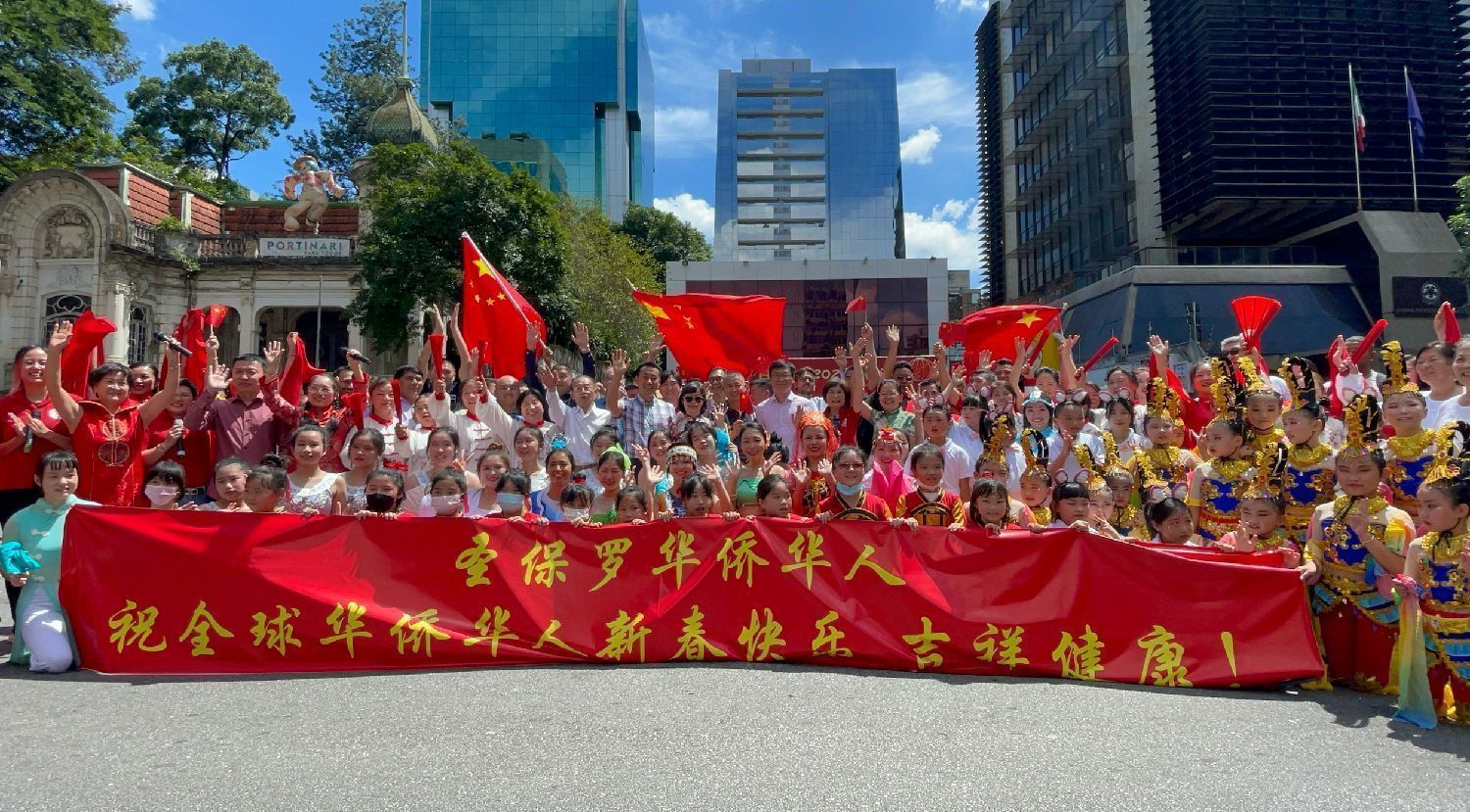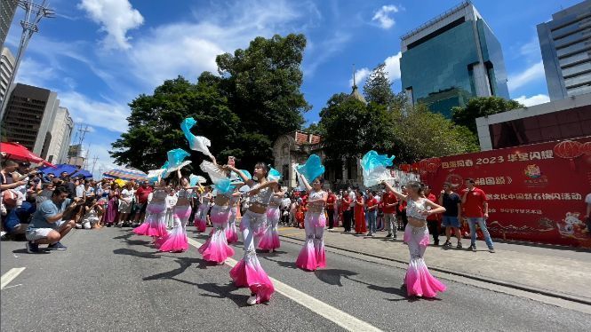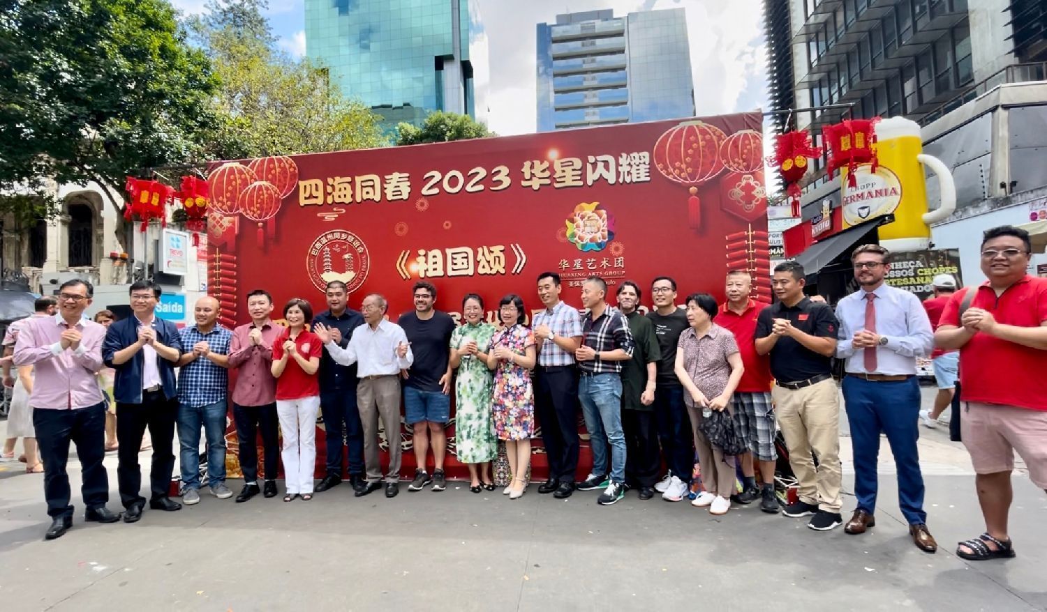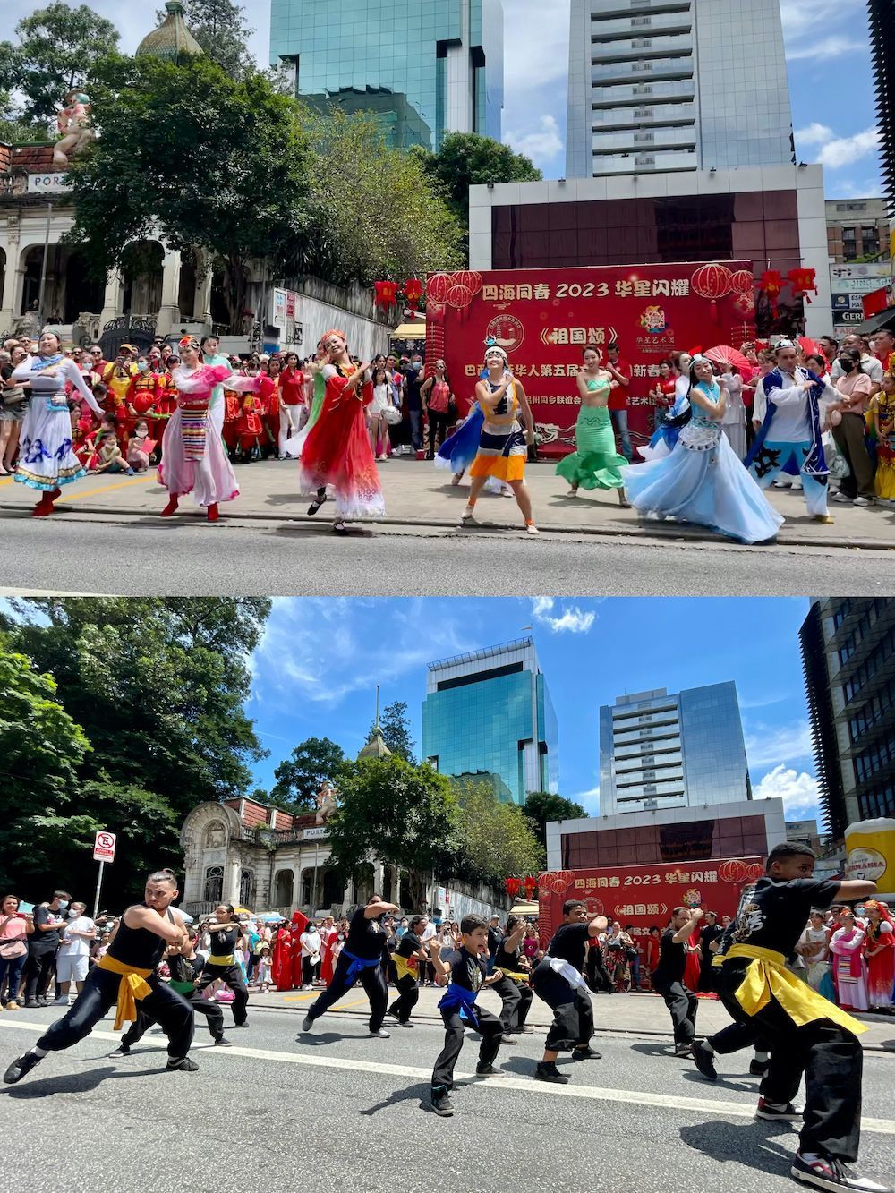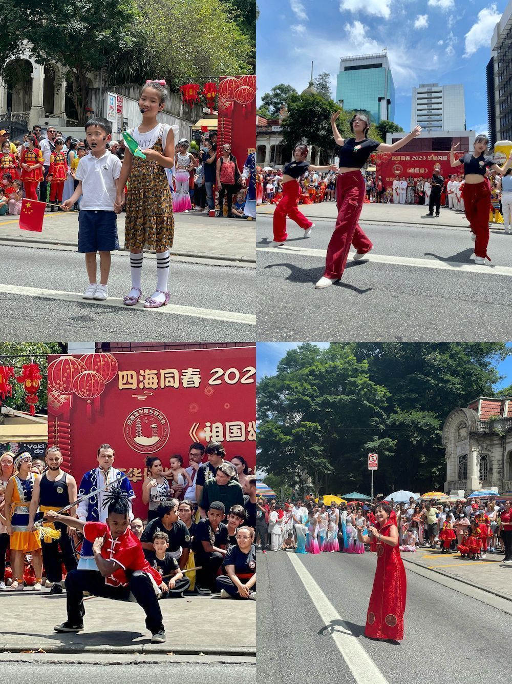 【南美侨报圣保罗记者戴萌报道】由巴西温州同乡联谊会、圣保罗华星艺术团共同举办的四海同春2023华星闪耀《祖国颂》巴西华侨华人第五届文化中国新春快闪活动。1月22日大年初一,在圣保罗市中心最繁华的保利斯达侨营完美商城前广场举行,中国元素耀眼圣保罗带动兔年春节气氛,吸引了上千巴西民众驻足观看。