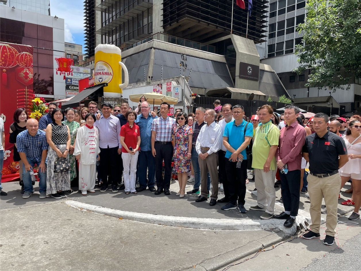 中国驻圣保罗总领事陈佩洁、田玉震副总领事、领侨处主任荣强、侨务领事李晓明,巴西华人协会会长叶周永,圣保罗华星艺术团团长李青霞,巴西温州同乡联谊会监事长、完美商场董事长朱轩初,巴西联邦政府机构协调部部长帕迪利亚(Padilha)代表法比奥·曼齐尼(Fabio manzini),圣保罗州议长安德烈·普拉多(Andre do Prado)特级助理马修斯·马费皮(Matheus mafepi),圣保罗市议努内斯·比柴罗(Nunes peixeiro)以及众多兄弟侨团侨领、华人同胞参加出席当天活动。