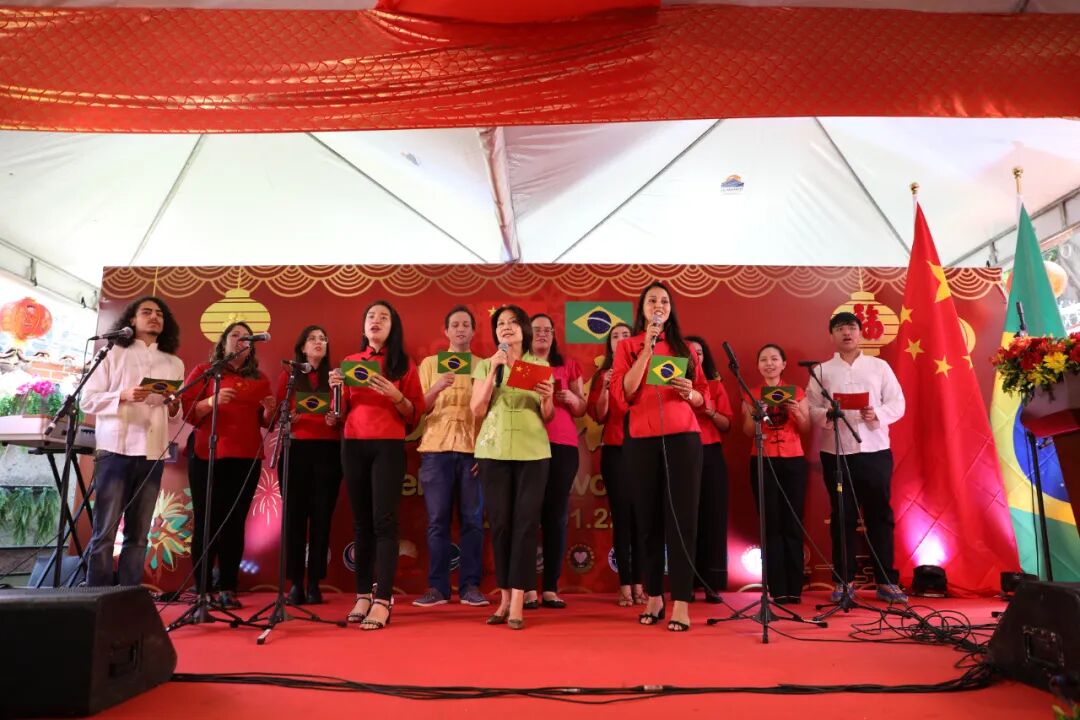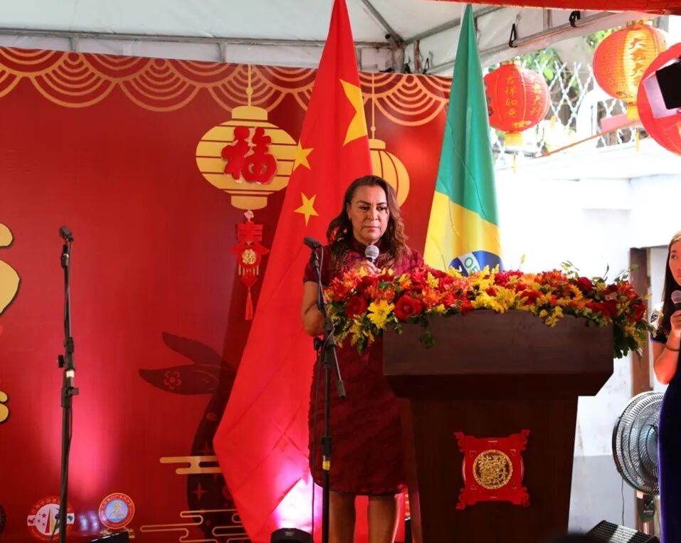 2023年1月22日,时值农历大年初一,驻里约热内卢总领馆与领区中资企业、孔院和侨团共同举办“2023欢乐春节”庆祝活动。田敏总领事出席并致新春贺词,里约州议会春节法定节日提案发起人、州议会议员蒂娅·茹、巴西外交部驻里约代表处、里约州市政府、议会等代表、外国驻里约领事机构和国际组织代表、侨团、中资企业、中外媒体、汉语教师、留学生代表等中巴各界人士500余人齐聚一堂,欢度春节。