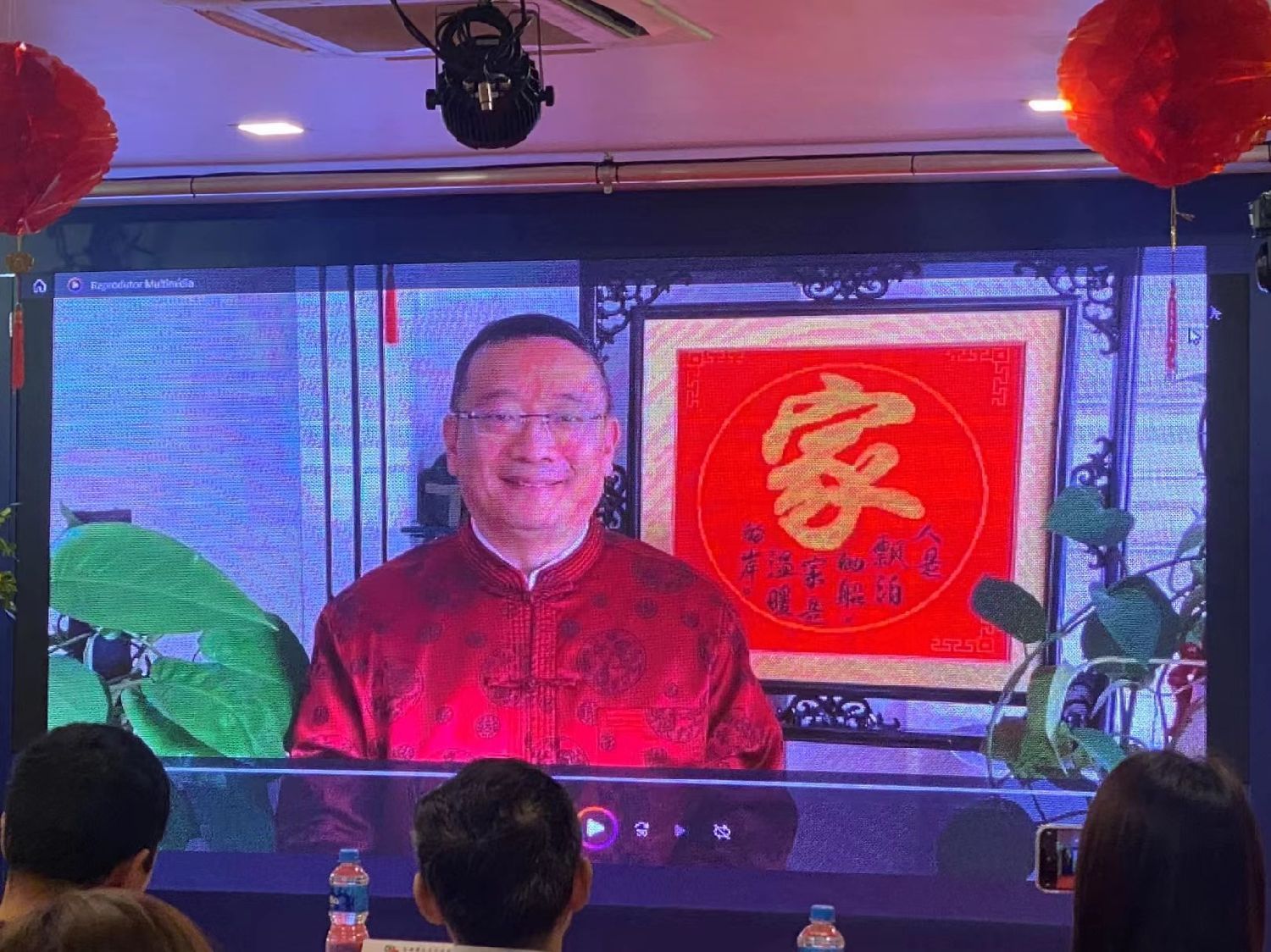 春节联欢会开始时首先播放了巴西华人文化交流协会上官建峰主席在中国传回的春节祝福视频,他在视频中向侨胞、向全体文协会员拜年,并送来浓浓的祝福!