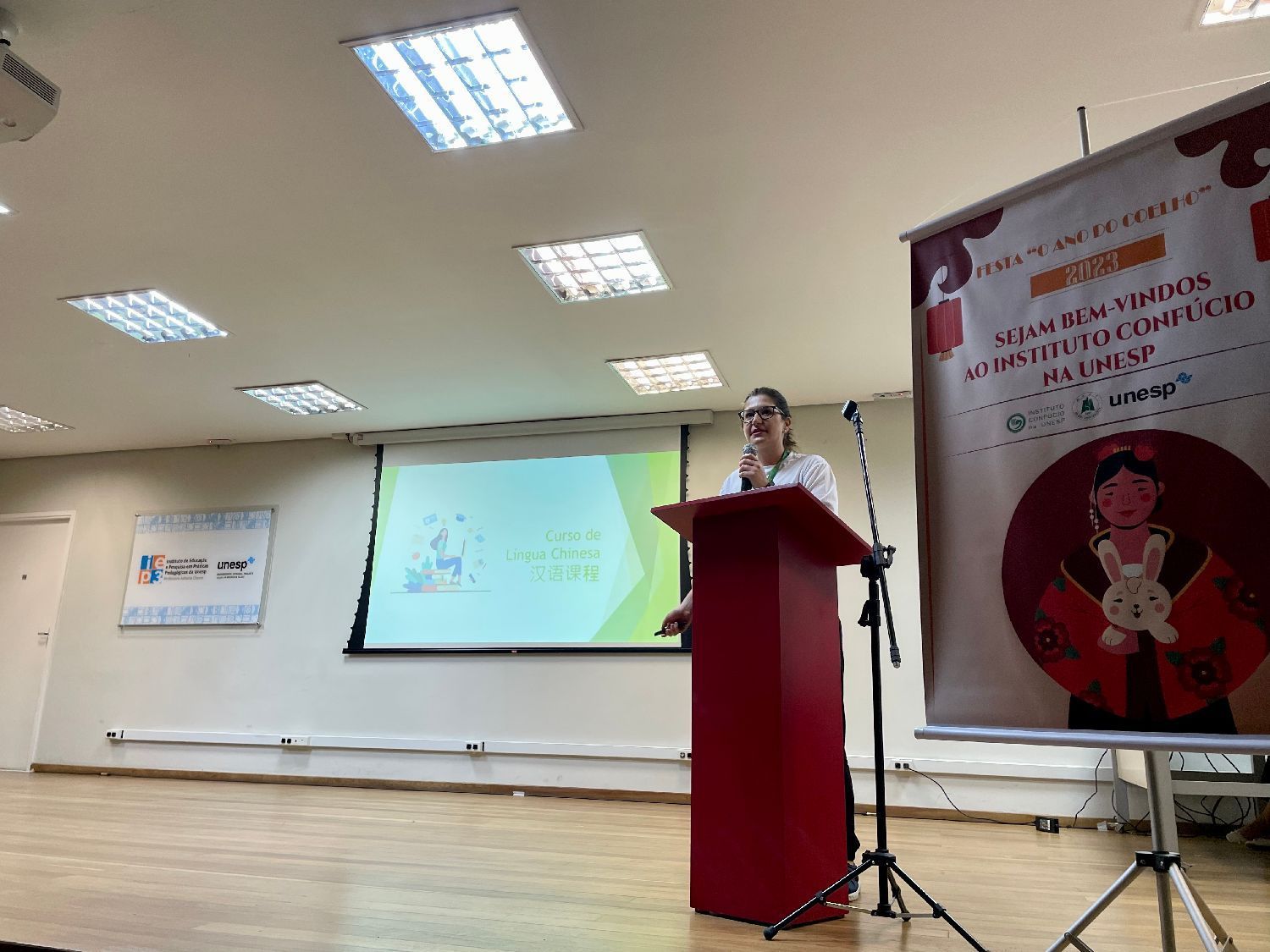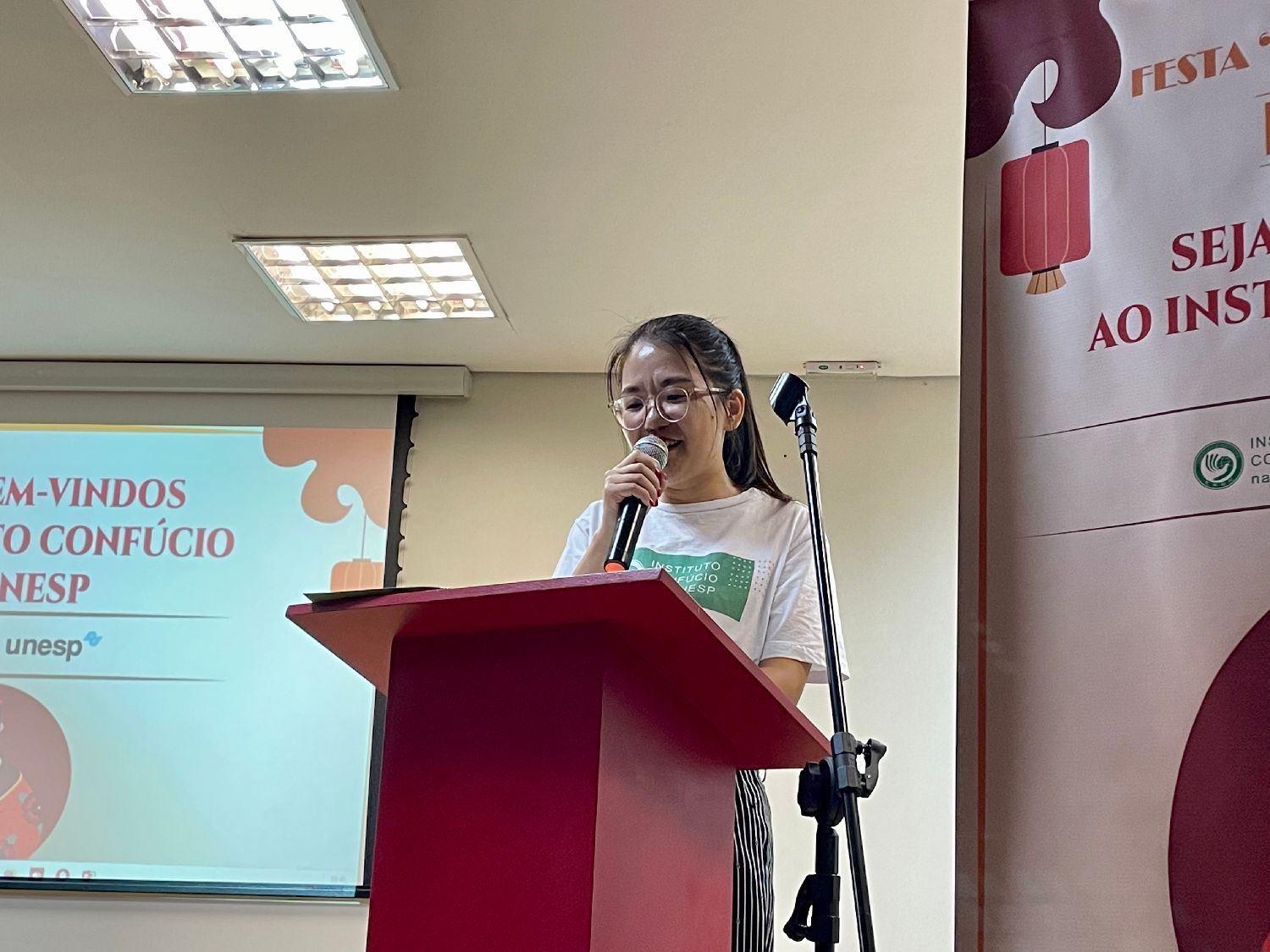 中方院长叶丹表达了对新学期孔子学院学员的欢迎。在致辞中还表达了对孔子学院的热爱和期望,她指出,孔子学院是中巴文化交流的重要平台和桥梁,通过学习中文和中国文化,可以让更多的巴西人民了解中国和中华文化,促进中巴两国人民之间的交流和合作。