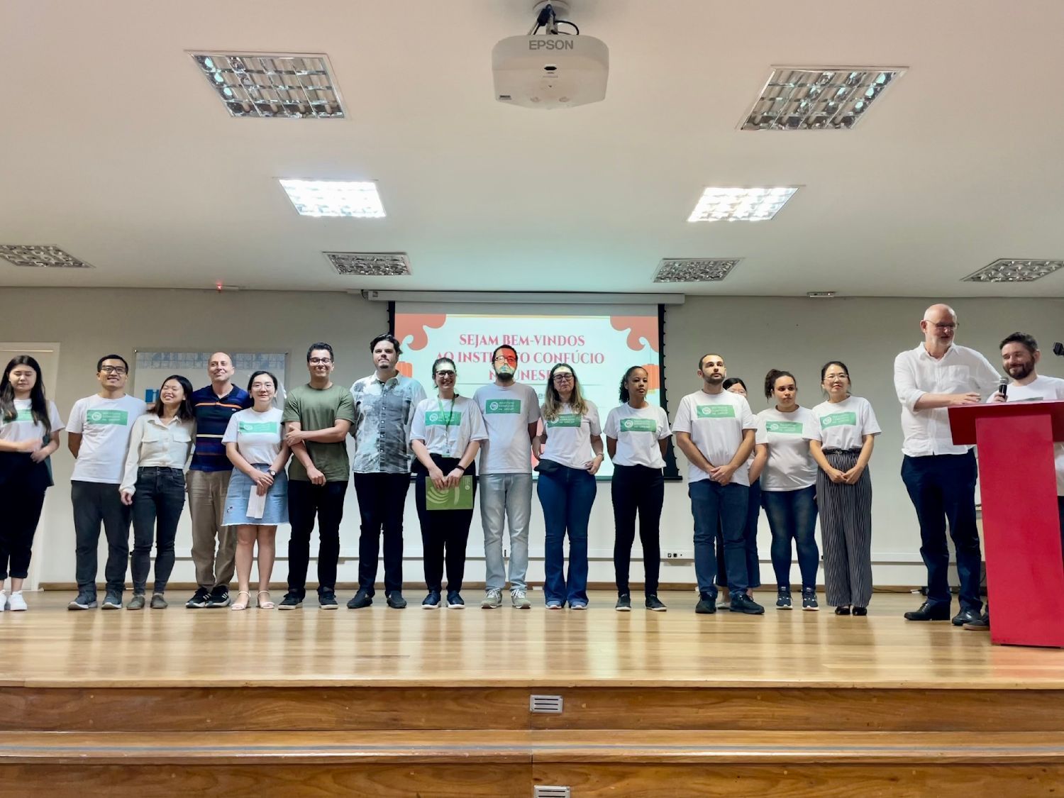 【南美侨报圣保罗记者戴萌报道】巴西圣保罗州立大学孔子学院举行新学期开学典礼,中国驻巴西大使馆教育参赞王志伟以视频方式参加、巴方院长刘易斯·保利诺(Luís Antonio Paulino)教授、中方院长叶丹、巴方执行院长蒂亚戈·布拉兹(Thiago Fernandes Braz)、华人协会秘书长蒋幼扬、圣保罗华星艺术团团长李青霞、中方公派汉语教师、孔院工作人员以及孔院学员参加了开学典礼仪式。