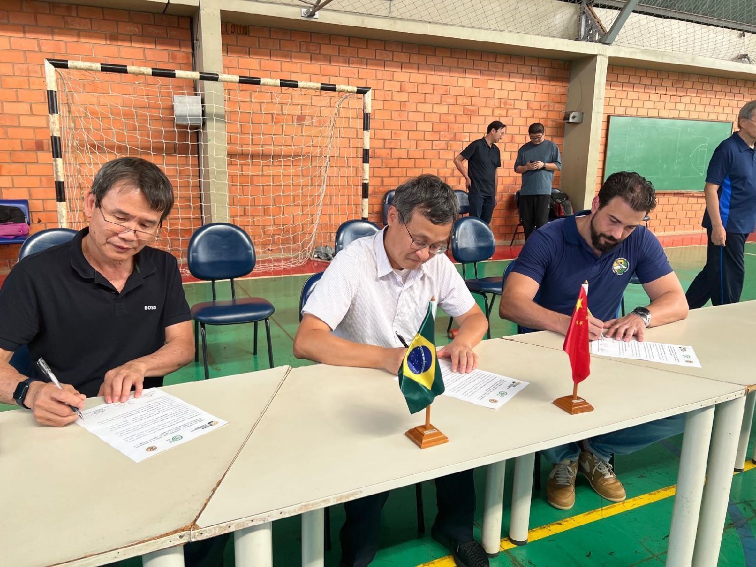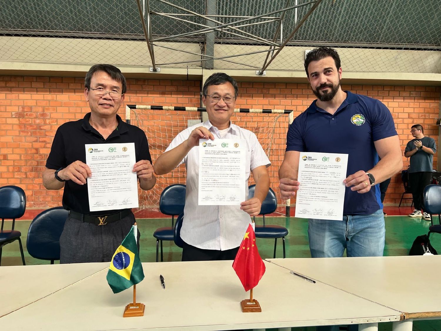 【南美侨报特约记者邹颖坎皮纳斯报道】4月1日下午,在坎皮纳斯大学体育学院举办的2023年国家队传统武术组及摔跤组选拔现场,巴西武术总会主席Rafael Rodrigues Uliani、坎皮纳斯大学孔子学院中方院长高沁翔,以及巴西中国文化交流协会前会长李正斌,分别代表三个单位签署了合作备忘录。今后,三方将为两国文化、体育活动的发展提供相互支持,并进一步促进功夫、武术和中国文化在巴西的传播。
