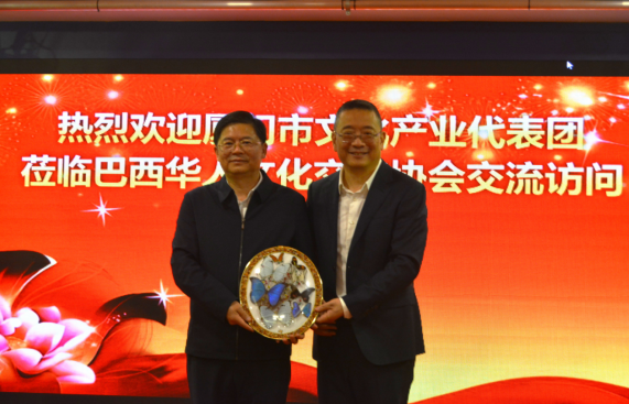 【南美侨报里约热内卢实习记者陈妤汎报道】六月十一日下午,巴西华人文化交流协会(简称文协)与到访的厦门市文化产业代表团在文协会馆举行座谈,双方就未来如何进一步加强文化领域之间的合作与交流进行了深入的探讨。中国驻里约总领馆总领事田敏、领侨处处长郭填甜,巴西华人文化交流协会主席上官建峰,里约华人联谊会代会长李本亮,里约中国和平统一促进会代会长魏贵朋,巴西中国和平统一促进会会长王俊晓,巴西中国浙江商会会长郑侠茂,里约广东同乡会代会长聂国基,圣保罗福建同乡会会长林方耀,巴西德馨双语学校校长魏万古,以及文协代表等应邀出席了活动。