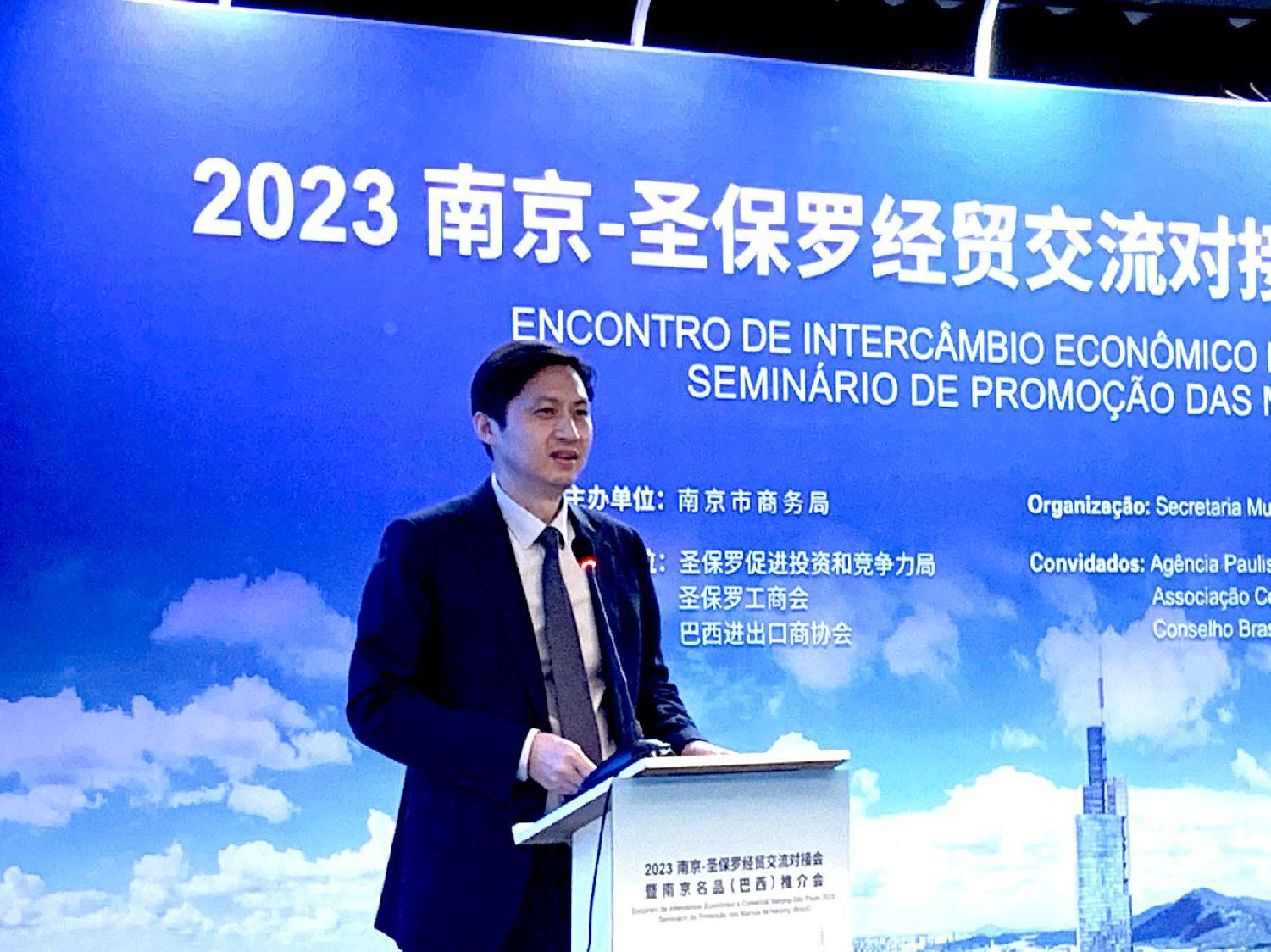 南京市商务局主要负责人介绍:南京是中国开放大省江苏的省会,市域面积6587平方公里,常住人口949.11万,也是中国东部地区重要中心城市、长三角特大城市。南京有着6000多年的文明史、近2500年的建城史和近450年的建都史。现存有世界上保留最长的明城墙(长达25.1公里)、佛教界的至高圣物“佛顶真骨舍利”、世界文化遗产明孝陵等等。南京是一座集山水城林为一体的生态城市。南京建成区绿化覆盖率接近五成,是国际花园城市、全国优秀旅游城市、国家生态园林城市。五年来,南京地区生产总值连跨五个千亿级台阶,特别是从2020年开始,经济总量连续三年位居全国十强。南京是全省唯一叠加“自贸试验区+服务业扩大开放”两大国家开放战略的城市,现已跻身国内开放能级最高城市之列。近3年外贸进出口连续迈上5000、6000亿元台阶,实际使用外资连续3年实现两位数增长,对外承包工程规模连续11年稳居全省第一,人均社会消费品零售额位居全国大中城市第一。南京同时拥有国家级高铁枢纽、千万级大型机场、亿吨级海港。南京致力于为企业提供“流程最优、环节最少、用时最短”的全生命周期服务,连续两年获评全国营商环境“标杆城市”。南京与全球主要国家和地区均建立经贸联系,与101个国际城市建立友城关系,“朋友圈”遍布五大洲54个国家。南京是全国科教重地、人才高地,目前拥有高等院校51所、在校大学生97万、两院院士94名。南京也是国内首个世界“文学之都”。南京正成为中国最有发展活力、最具投资引力、最宜人居生活的佳地之一。今年是中国和巴西建立战略伙伴关系30周年,明年是两国建交50周年。在促进中巴两国友好合作、互利共赢的过程中,南京愿意加强与圣保罗联系交流,与在座企业、协会开展全方位合作,实现互利共赢,共同发展。