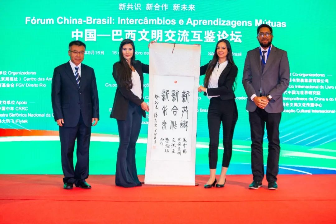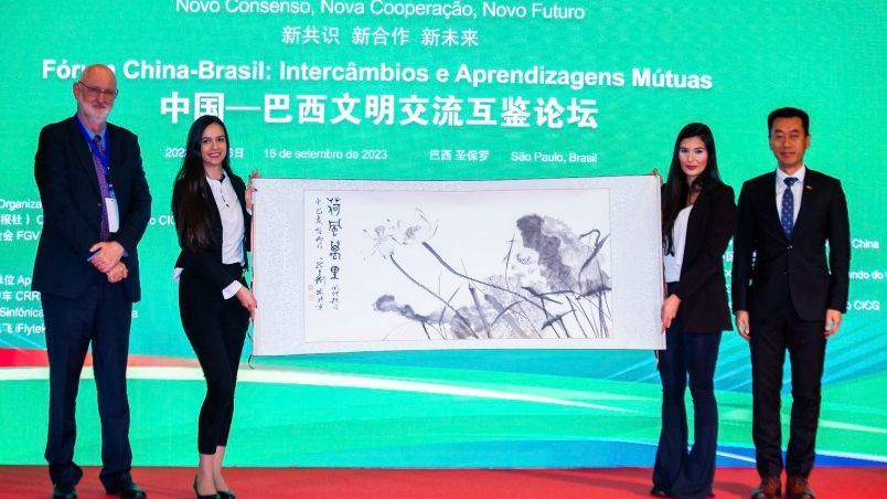论坛还发布了系列文明交流互鉴成果,包括媒体类成果:《今日中国》“携手开辟新时代中巴关系新未来”葡文专刊发布及新版葡文网站上线;学术研究类成果:《中国—巴西Z世代相互文化认知度调查报告》正式发布;文化类成果:中国交响乐团党委书记周宇携全团以视频方式演奏祝福中巴友谊曲目,现场展示中国外文局副局长陆彩荣等人的以中巴友谊为主题的书画作品并赠送给参会巴方嘉宾,中国书画家们也通过视频对中巴友谊送去祝福;此外还配套举办了中国—巴西文明交流互鉴成果图片展。