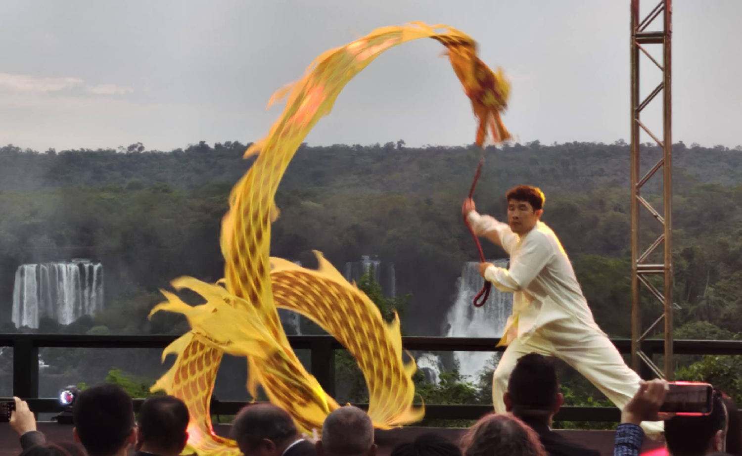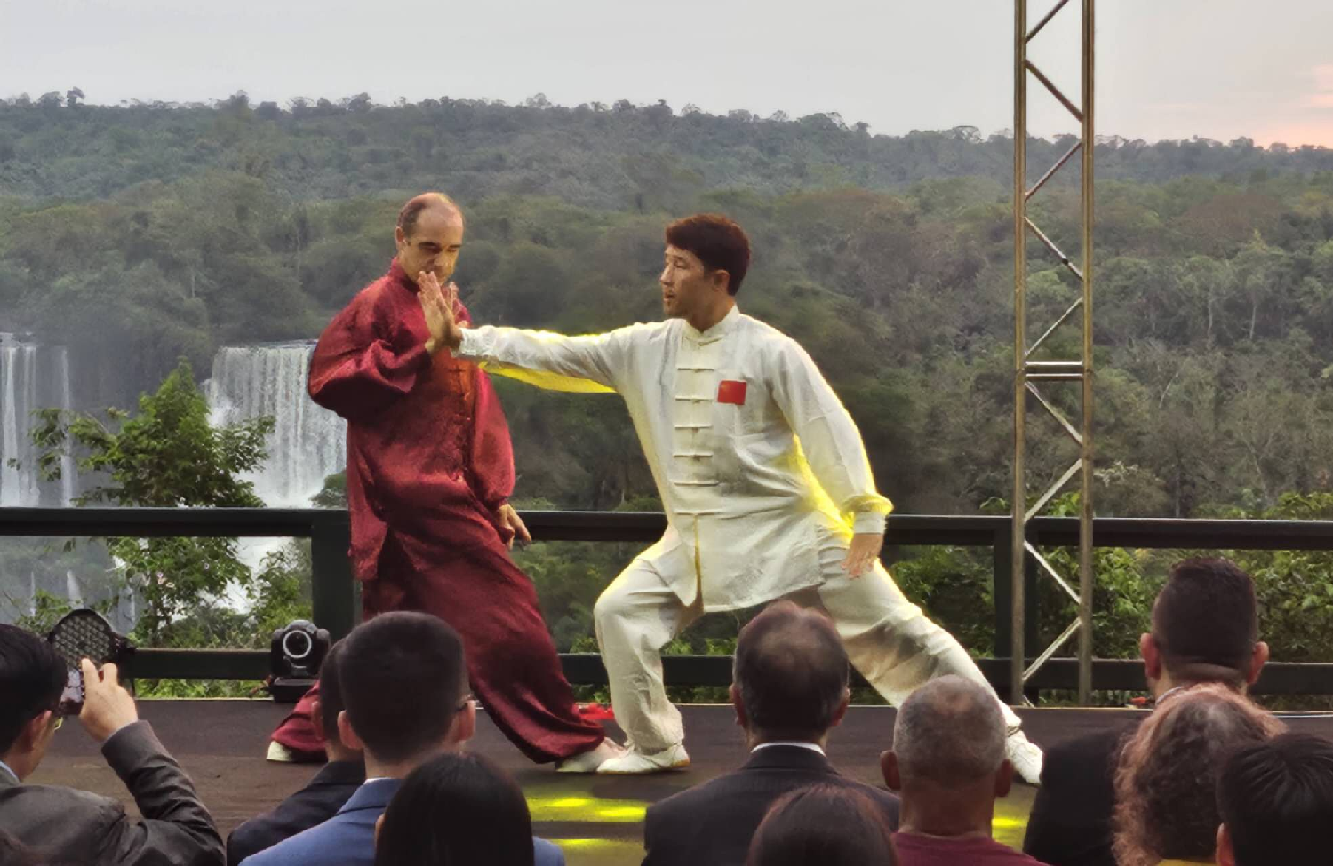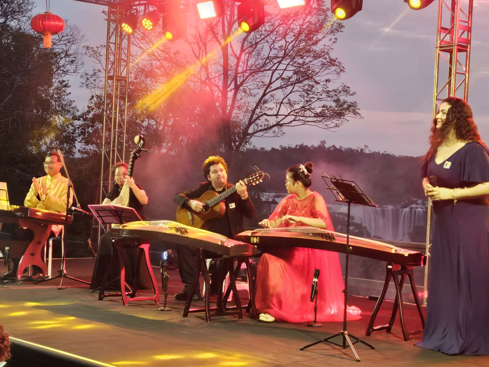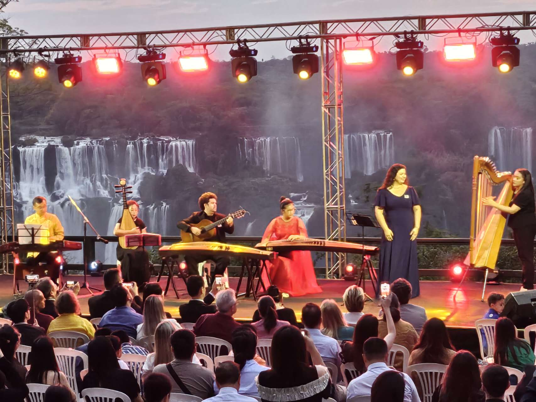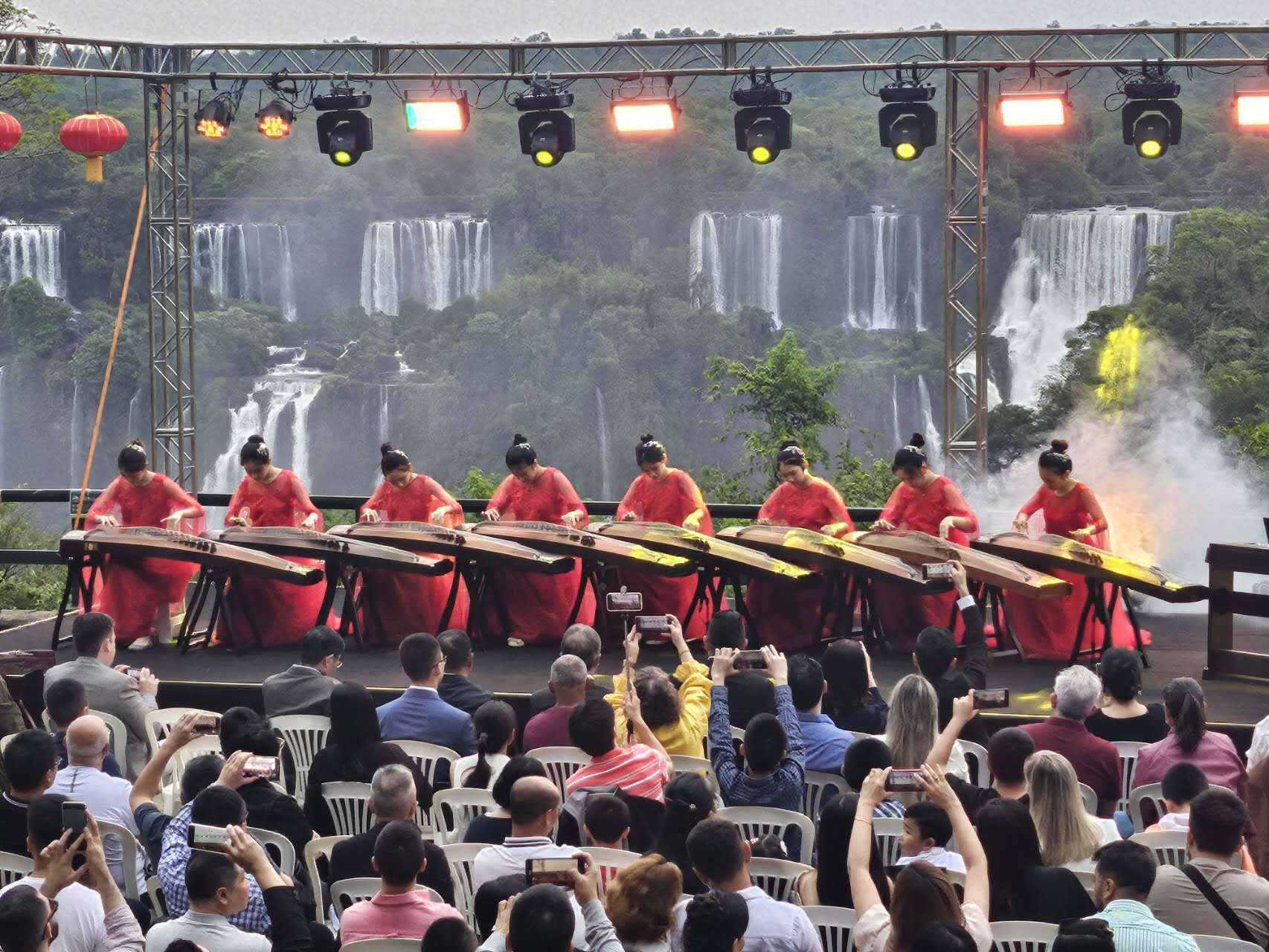 【南美侨报网讯】当地时间29日晚,由巴西圣保罗亚洲文化中心主办的“瀑布之夜”中秋晚会在伊瓜苏大瀑布巴西侧举行,吸引了来自巴西和巴拉圭的华侨华人以及巴西民众,共同沉浸在中国传统文化之美中。