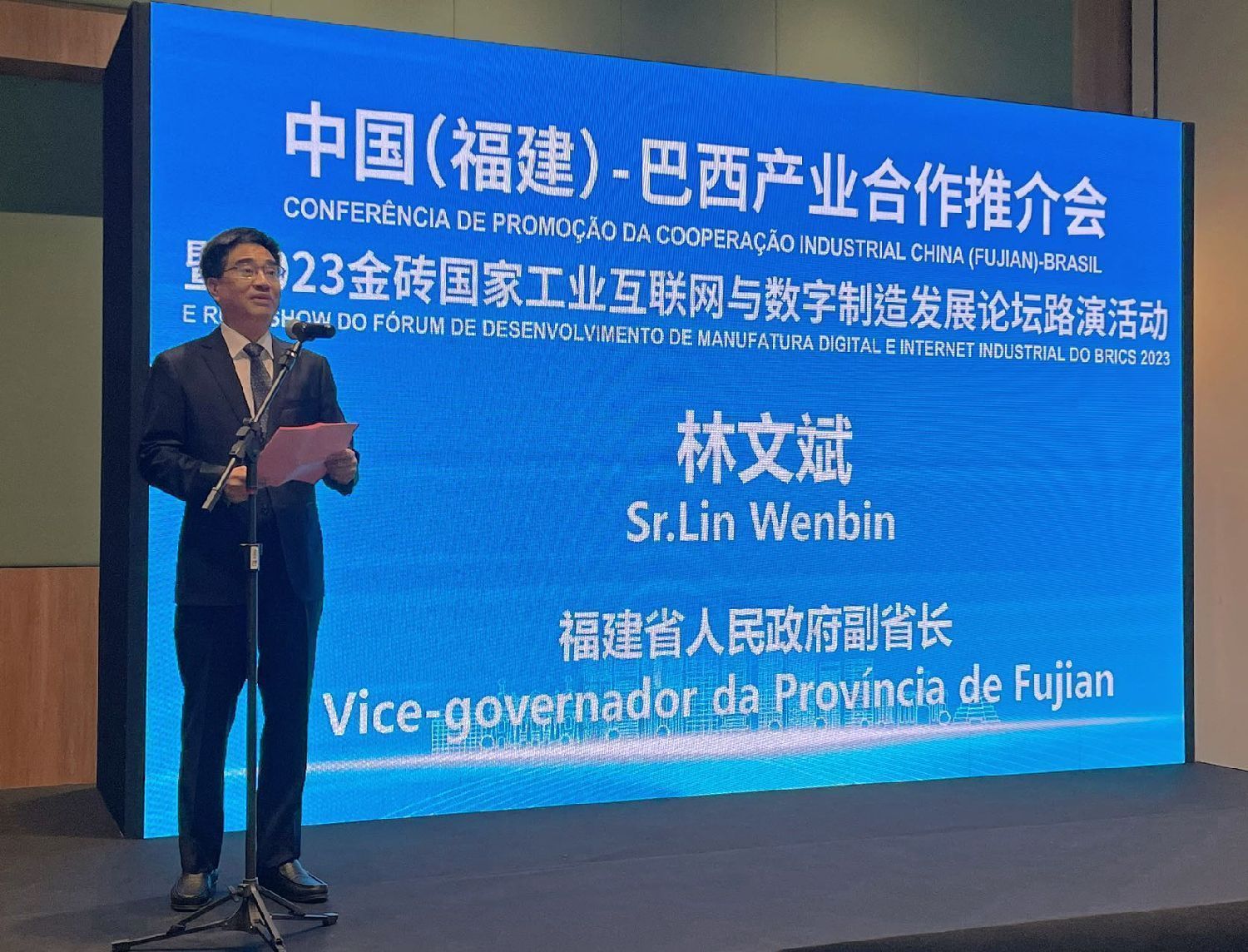 福建省副省长林文斌致辞时,从宏观经济趋势出发,分析了中巴经济合作的历史背景、现状及未来的发展方向,并对如何进一步加强双方在新兴领域,如工业互联网和数字制造等合作给出了建议。