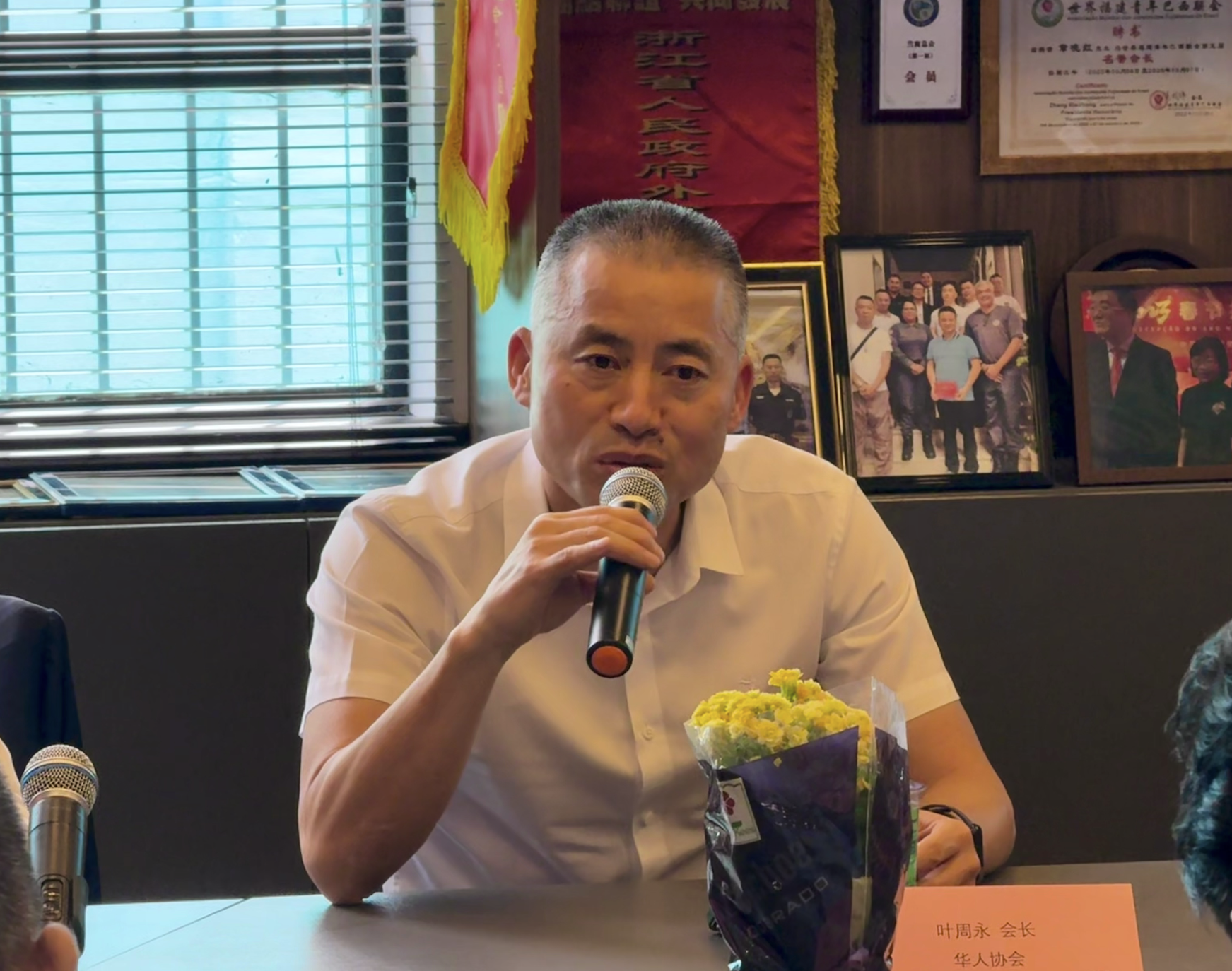 叶周永在发言时说:“过去一年金华同乡会不仅在促进文化交流、弘扬中华文化方面做出了巨大贡献,还在支持中国、参与社区事务以及慈善活动中展现了极大的热情和责任感。向他们在过去一年中出色的表现和取得了显著成就表示祝贺。“他表示,巴西华人协会对金华同乡会未来的发展充满期待,相信我们会共同开启更加辉煌的新篇章。