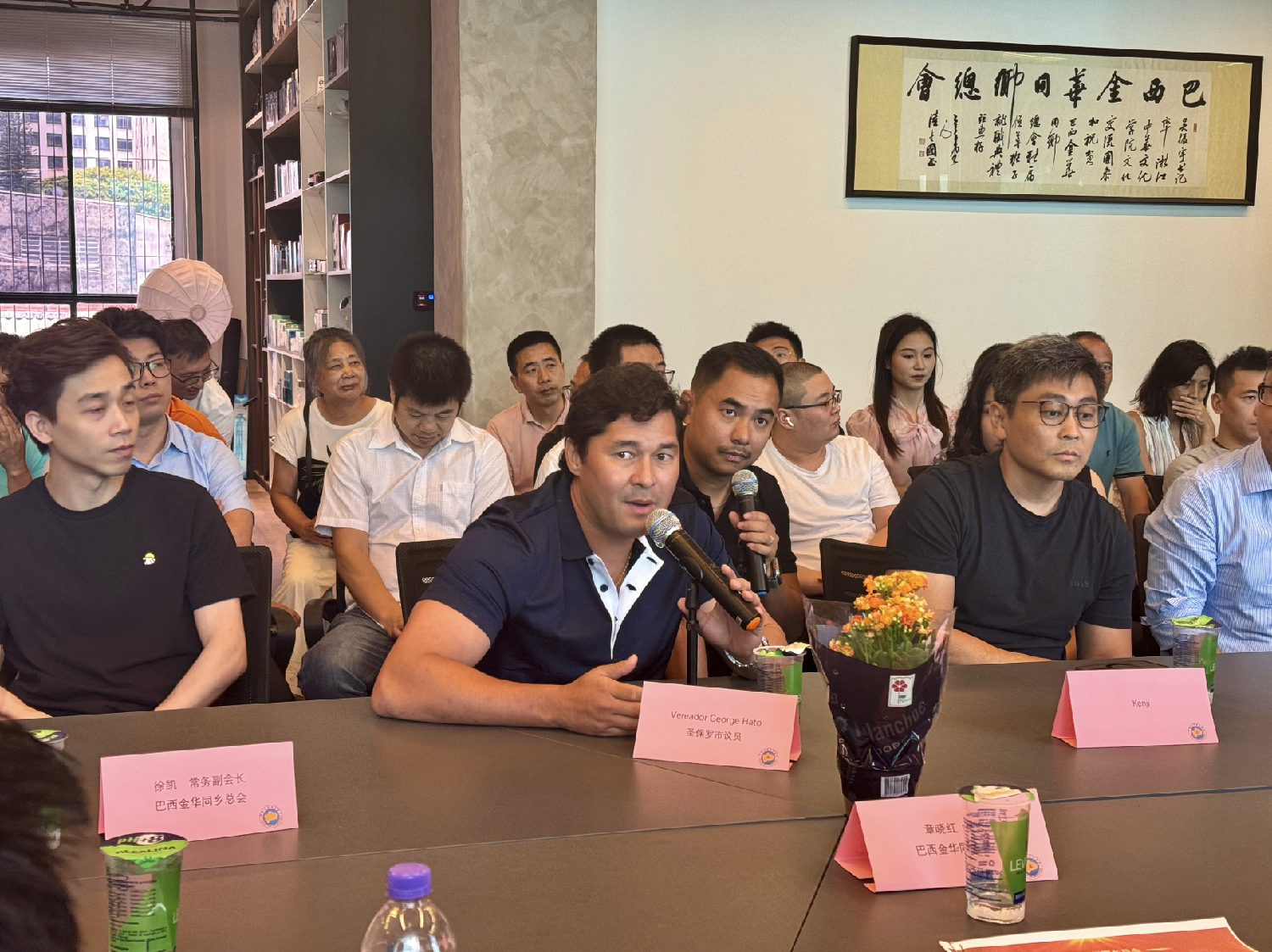 乔治·哈托和肯吉发言时首先对金华同乡会在圣保罗ipiranga遭遇火灾,金华同乡会所做的慈善捐赠表示了深深的感激。他提到,金华同乡会不仅在推广中华文化方面做出了卓越贡献,而且在慈善方面也展现了极大的热心和慷慨。这些活动极大地帮助了当地社区,并在巴西社会中树立了良好的形象。他进一步强调,金华同乡会的行动不仅仅是单方面的慈善捐赠,更是中巴友好关系的一个生动体现。他们所做的工作不仅加深了巴西民众对中国文化和中国人民的理解和尊重,也促进了中巴之间的文化交流和情感联系。