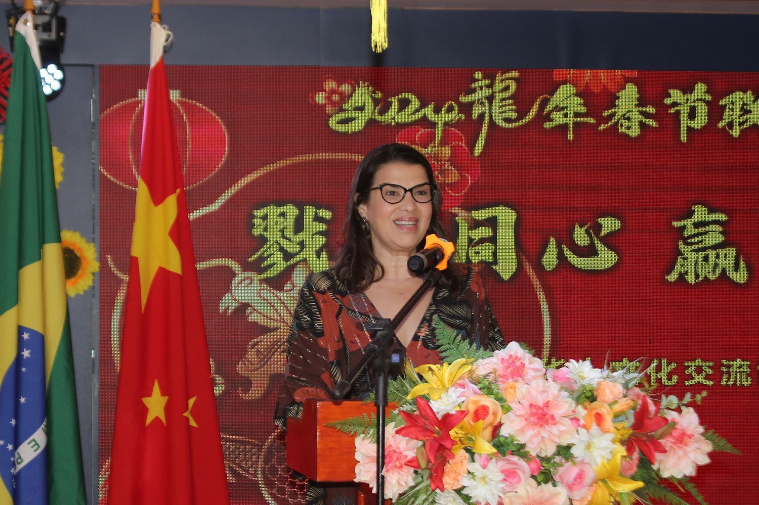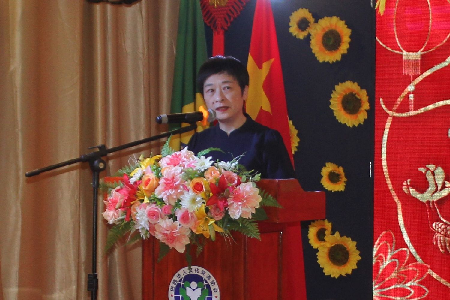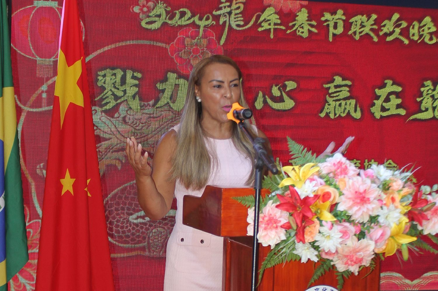 【南美侨报记者陈妤汎里约热内卢报道】2月3日,由巴西华人文化交流协会(简称“文协”)主办的龙年春节联欢会在里约热内卢隆重举行,中国驻里约总领馆总领事田敏、领侨处处长齐冀,巴西联邦议员马塞洛·奎罗斯(Marcello Queiroz),里约市立法议会副主席蒂娅·茹(Tia Ju),巴西文化与创意经济厅厅长丹妮尔·巴罗斯(Danielle Barros),里约中国和平统一促进会代会长吴宏林,巴西中国和平统一促进会会长张小春,巴西中国浙江商会代会长陈翔广,巴西安徽商会会长魏贵德,文协前主席叶王平、孙特英,以及当地侨胞、巴西友人等应巴西华人文化交流协会主席上官建峰邀参加了联欢会。