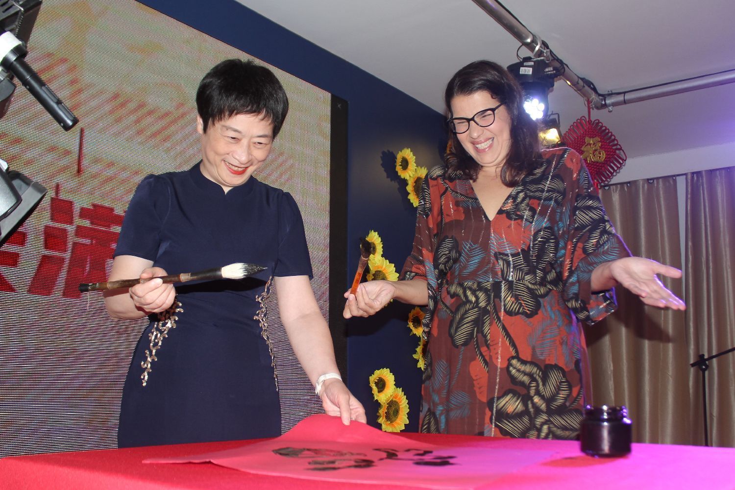 田敏与巴罗斯共同书写“福”字,展示了两国间深厚的友谊,主持人表示,这不仅是对过去五十年友好交往的致敬,更是对未来五十年合作共赢的美好期许;里约总领馆领事们朗诵诗歌《新年,你好》,温馨而深情,拉近了两国文化之间的距离;台湾同胞的表演“采茶舞”感染了在场观众,更成为大陆与台湾两岸情感的交汇点。