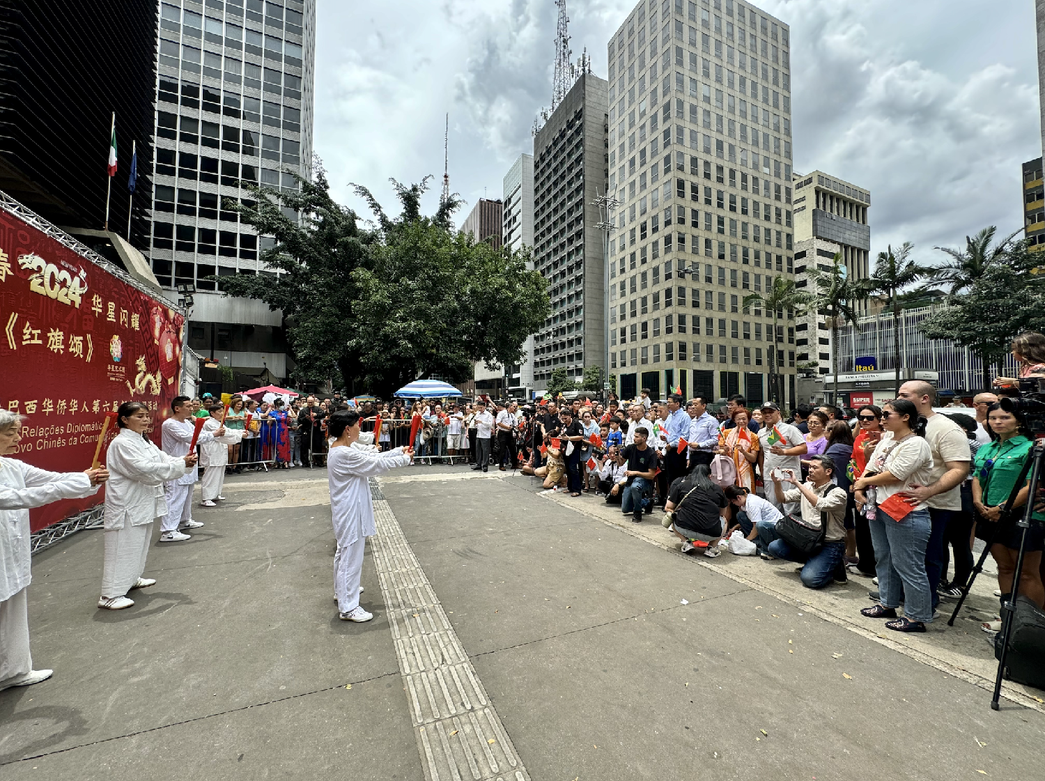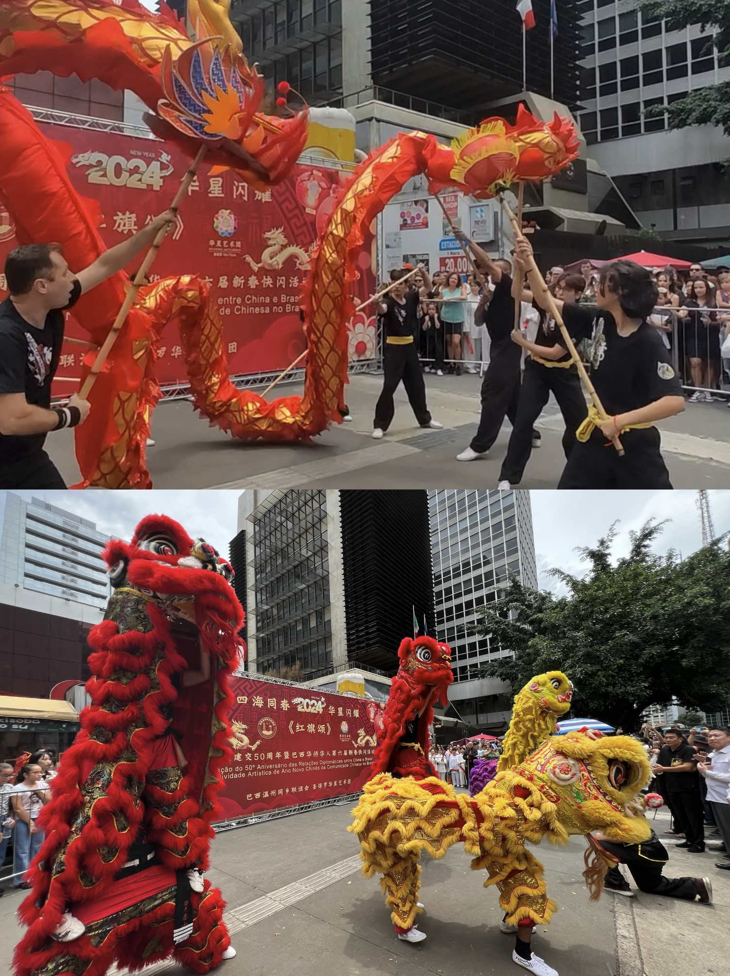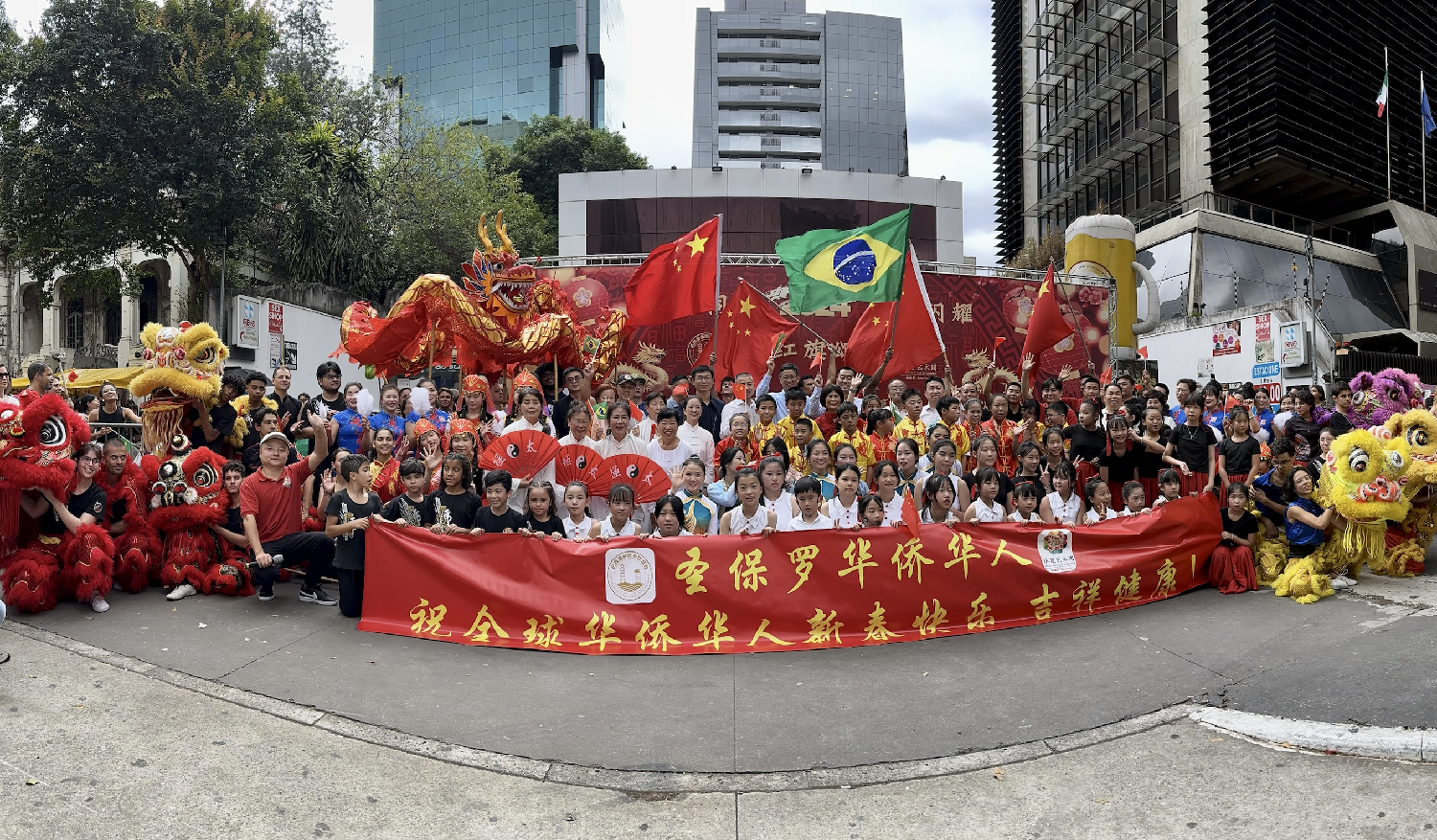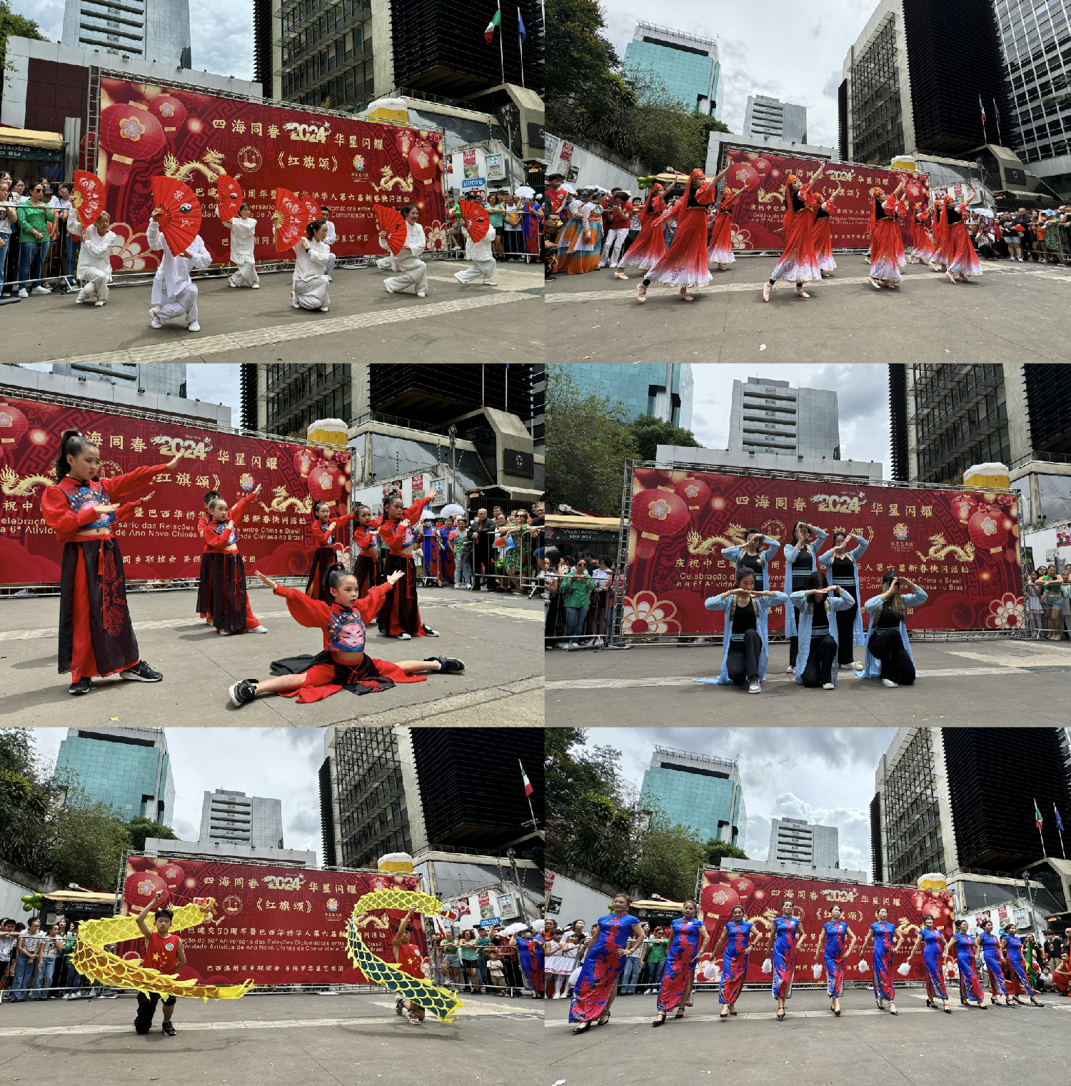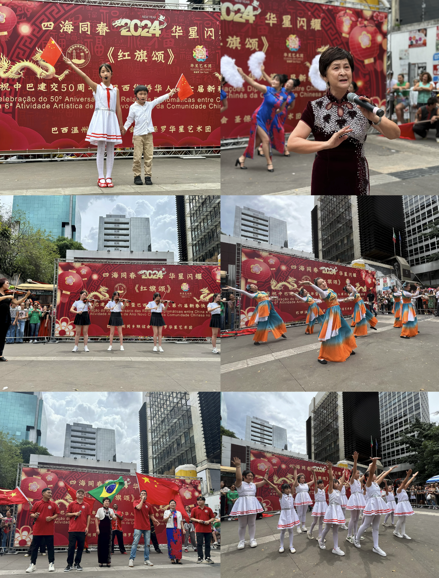 【南美侨报圣保罗记者戴萌报道】在中国农历新年即将来临之际,由圣保罗华星艺术团与巴西温州同乡联谊会携手主办的“四海同春2024华星闪耀《红旗颂》中国新春主题快闪活动”,于2月4日,在圣保罗市中心的保利斯达完美商城前举行。活动以其独特的艺术表现,丰富多彩的节目,将中国新年的喜庆与欢乐带给了圣保罗市民,吸引了成千上万的巴西民众和华人同胞驻足观赏。