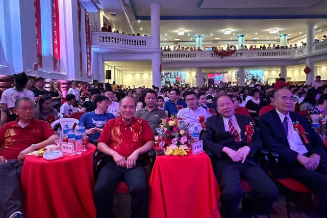 【南美侨报记者庄沂圣保罗报道】2024年2月10日(农历大年初一),圣保罗八家粤籍侨团在圣保罗葡萄牙公馆(Casa de Portugal)联合举办庆祝中巴建交50周年·粤韵新春巴西华侨华人春节联欢晚会。驻圣保罗总领馆总领事余鹏、副总领事田玉震、领侨处主任荣强、侨务领事李晓明、巴西华人协会会长叶周永、主办侨团负责人苏新效、杨惠昂、宋远雄、陈荣添、魏淡平、郑杰波、张夑波、郭文龙及圣保罗各侨团代表出席活动,并吸引了一千多名侨胞共同参与。