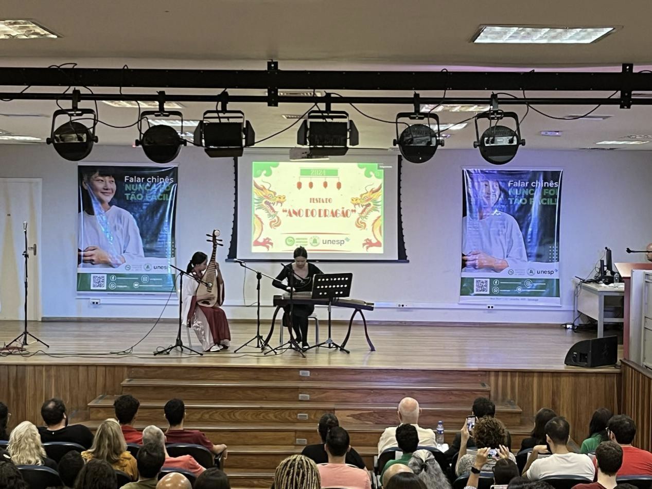 【南美侨报网讯】时值龙年新春,圣保罗州立大学孔子学院迎来2024年新学期开学典礼暨中国新年庆祝活动。圣保罗州立大学校长办公室主任塞萨尔·马丁斯教授(Cesar Martins),孔子学院巴方院长路易斯·安东尼奥·保利诺教授(Luís Antonio Paulino)、中方院长叶丹、巴方执行院长蒂亚戈·布拉兹(Thiago Fernandes Braz)、中方公派汉语教师、孔子学院工作人员以及学员400多人参加典礼。