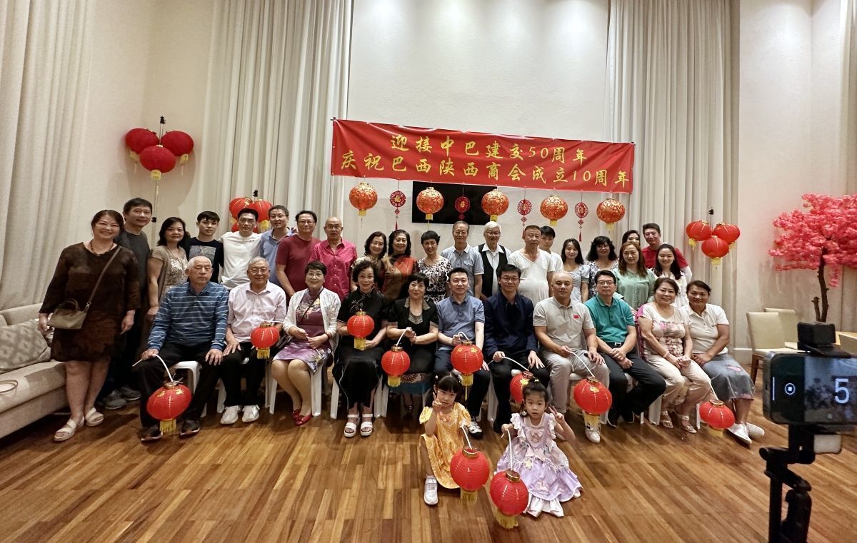 【南美侨报记者庄沂圣保罗报道】2月24日,巴西陕西商会举办迎接中巴建交50周年暨庆祝商会成立10周年新春联谊活动,驻圣保罗总领馆领侨处主任荣强、侨务领事李晓明、巴西华人协会秘书长蒋幼扬、巴西陕西商会会长贺清琴、圣保罗侨社代表王学霞、宋远雄、王学鹏及商会理监事成员出席活动。