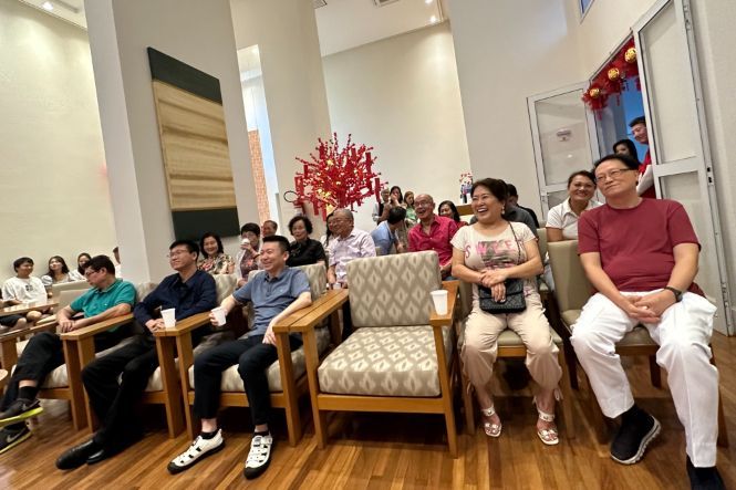 郭祖德老师为大家吹奏笛曲,熟悉的旋律让陕西老乡们仿佛回到家乡。大家围坐一起吃团圆饭,大拉皮、肉夹馍,还有美味的元宵,在欢声笑语中度过了美好的夜晚。
