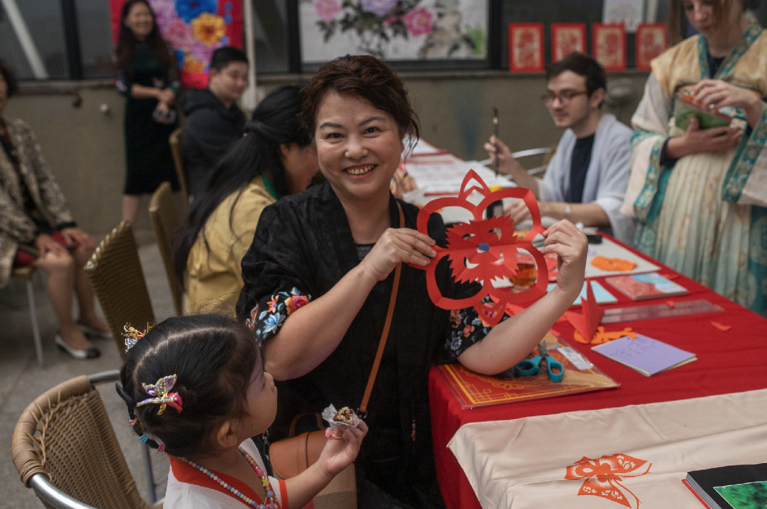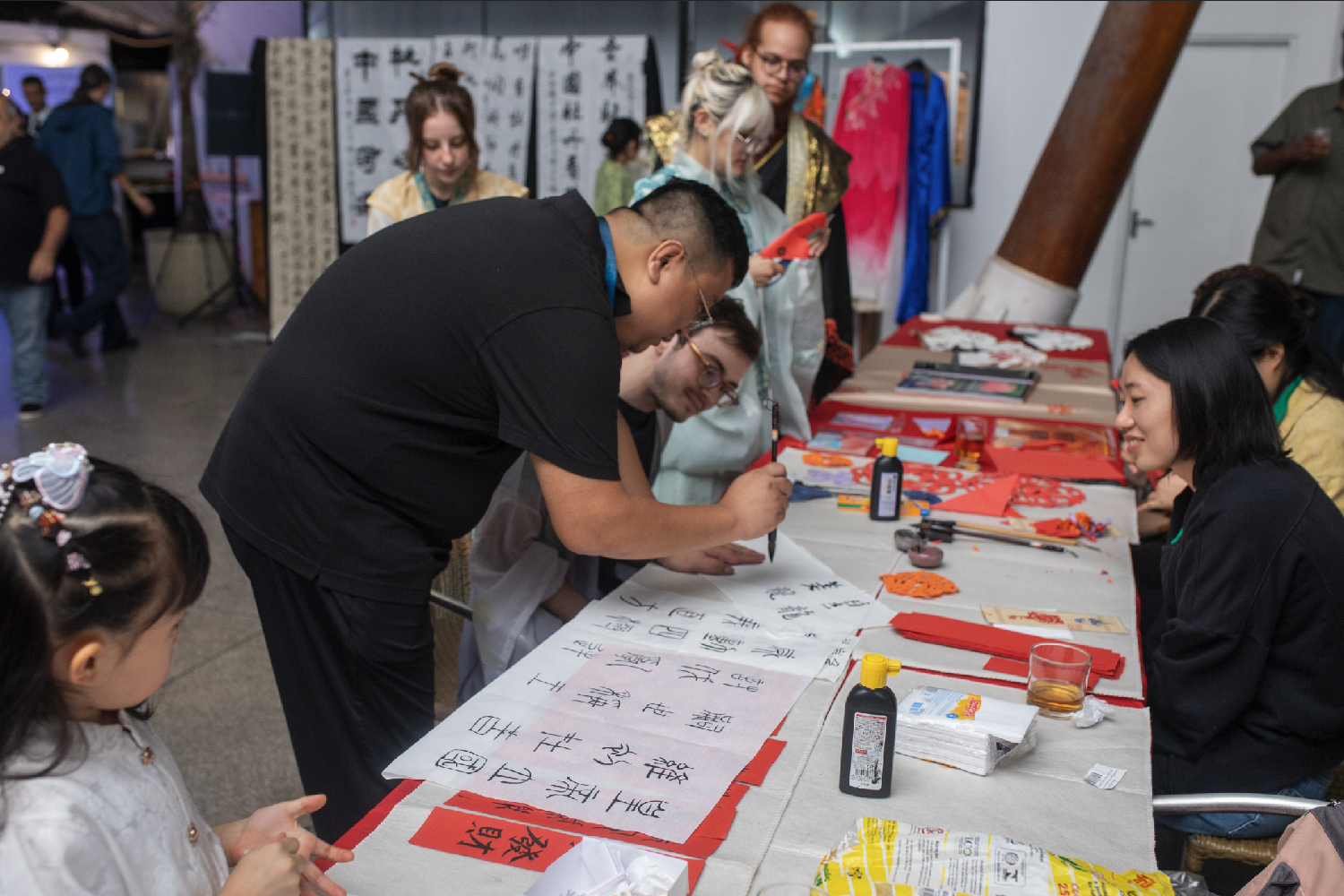 圣保罗州立大学孔子学院带来的水墨吹画、毛笔字和剪纸工作坊,让嘉宾有机会近距离体验中国传统文化的独特魅力。通过亲手制作,加深他们对中国艺术的更深理解和欣赏。