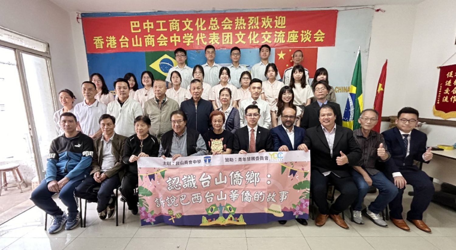 巴西工商文化总会成员与香港台山商会中学代表团成员合影
