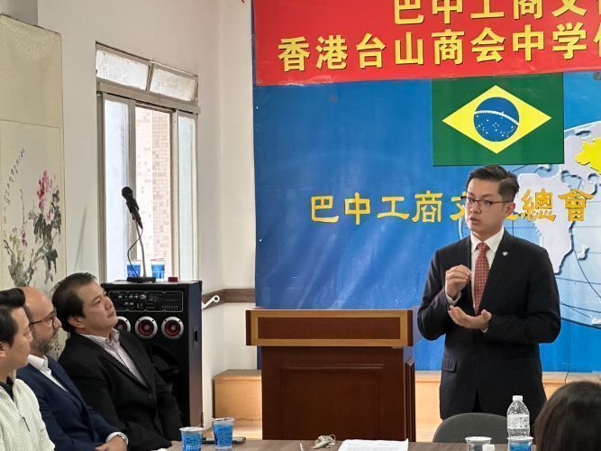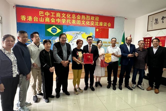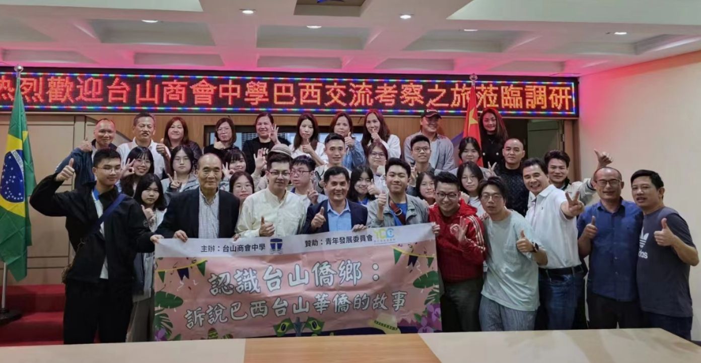 丘镇华在讲话中表示,台山商会中学由香港台山商会1982创办,这个代表团是第一个访问巴西的香港中学生团,也是疫情后首次出访。今年恰逢中巴建交50周年,他们感受到了中巴友好的热烈氛围,台山乡亲的热情款待也让他们倍感温暖。代表团此行,是为了帮助青年老师和学生们了解海外台山侨乡巴西、了解台山侨胞的历史、生活现状,认识国家和华侨在推动世界发展中所扮演的关键角色,增进对“一带一路”的认识。