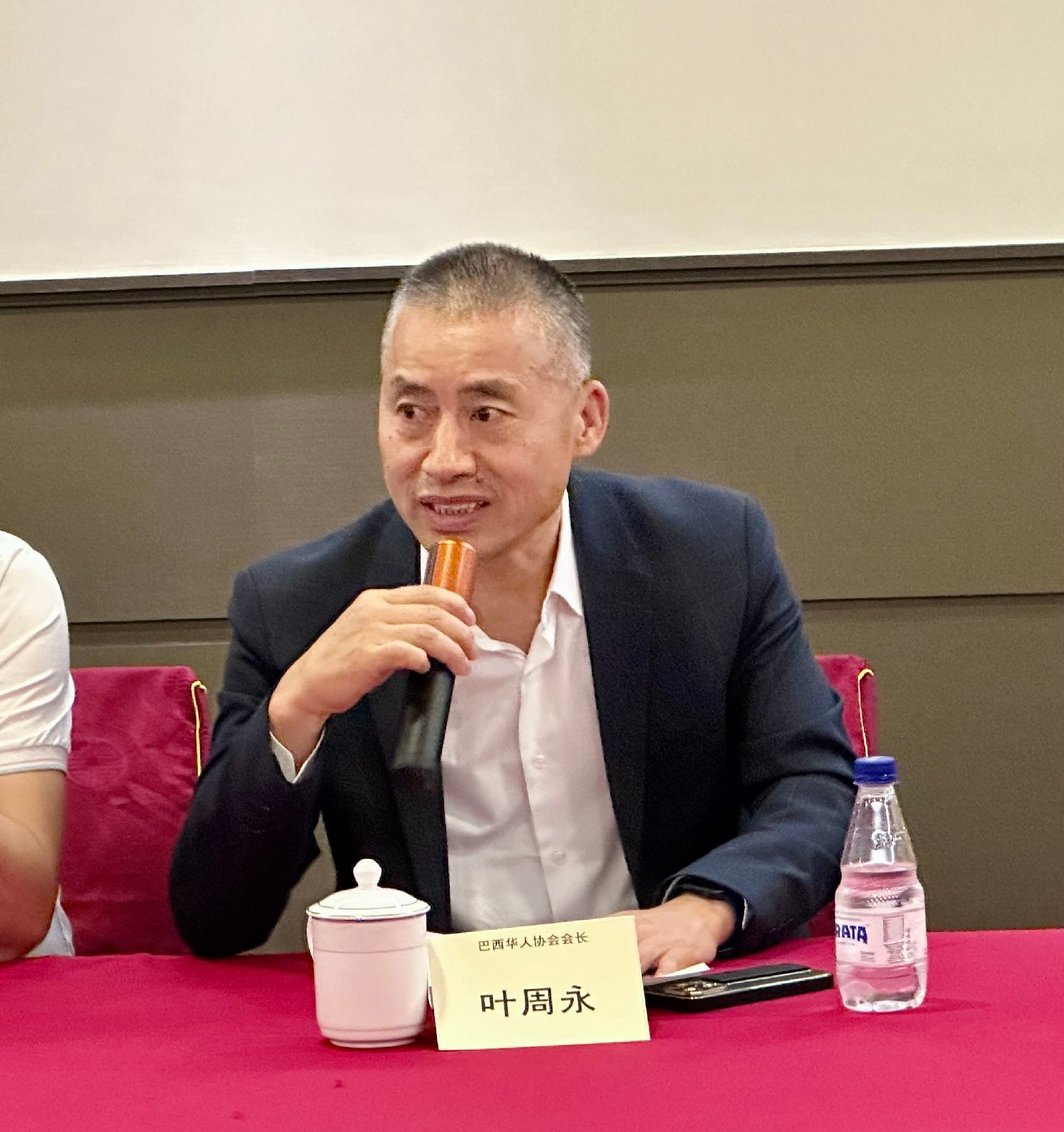 叶周永首先代表巴西华人协会对杨晋柏会长及代表团一行的到访表示热烈欢迎,并介绍了华协一直致力于推动中巴在经济、教育、文化等领域的交流与合作,深化两国人民之间的友谊的努力。他特别提到了巴西联邦政府、圣保罗州政府、圣保罗市政府先后以立法的形式设立了中国移民日。还分享了去年,巴西总统卢拉访华,特邀华协三名青年侨领随团访问;上个月,华协常务副会长、青田同乡会会长叶王永加入巴西社会党,开启华人参政的新征程的动向。叶周永还提到圣保罗华助中心教育组正在组织第七届全球华语朗诵大赛巴西赛区活动,吸引了众多学校和华裔学生的参与,以展现中华文化的独特魅力。