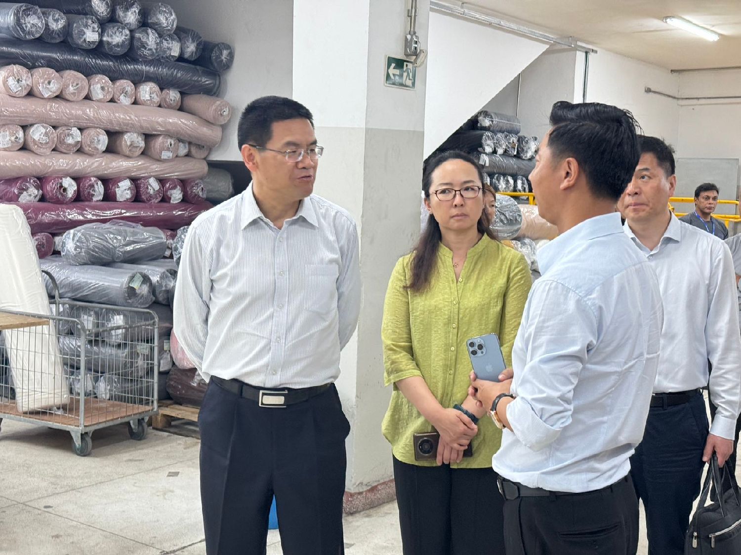 杨晋柏在亲切交谈时,介绍了北京市最新的发展情况。他还深入了解了兴达纺织的业务拓展及创新成就,并对其在推动社会责任和地方经济发展中所发挥的积极作用表示赞赏。他强调,侨商侨企应进一步深耕当地市场,通过合法合规的商业实践,积极承担更多社会责任,共同维护好新时代大国侨民形象。