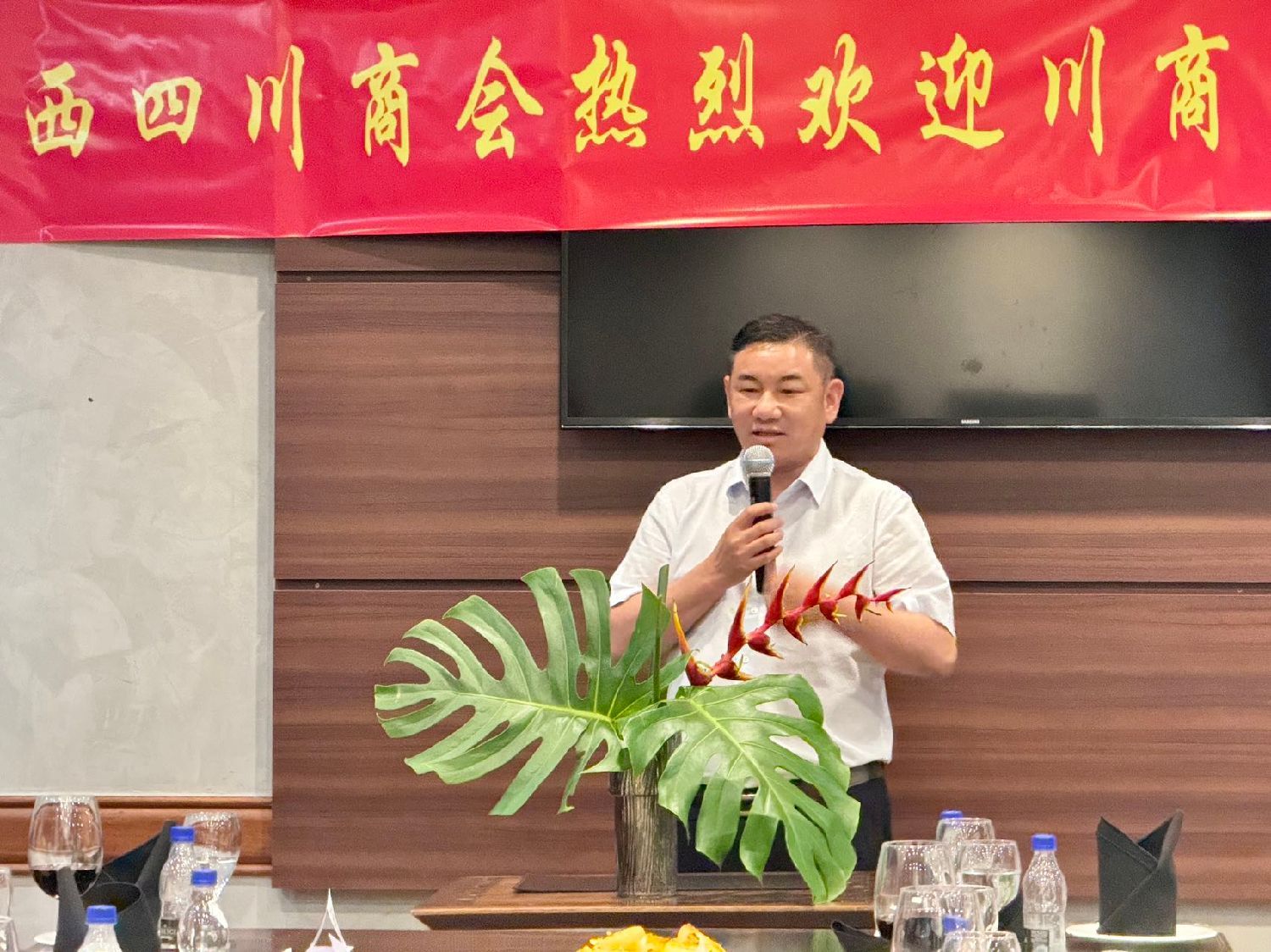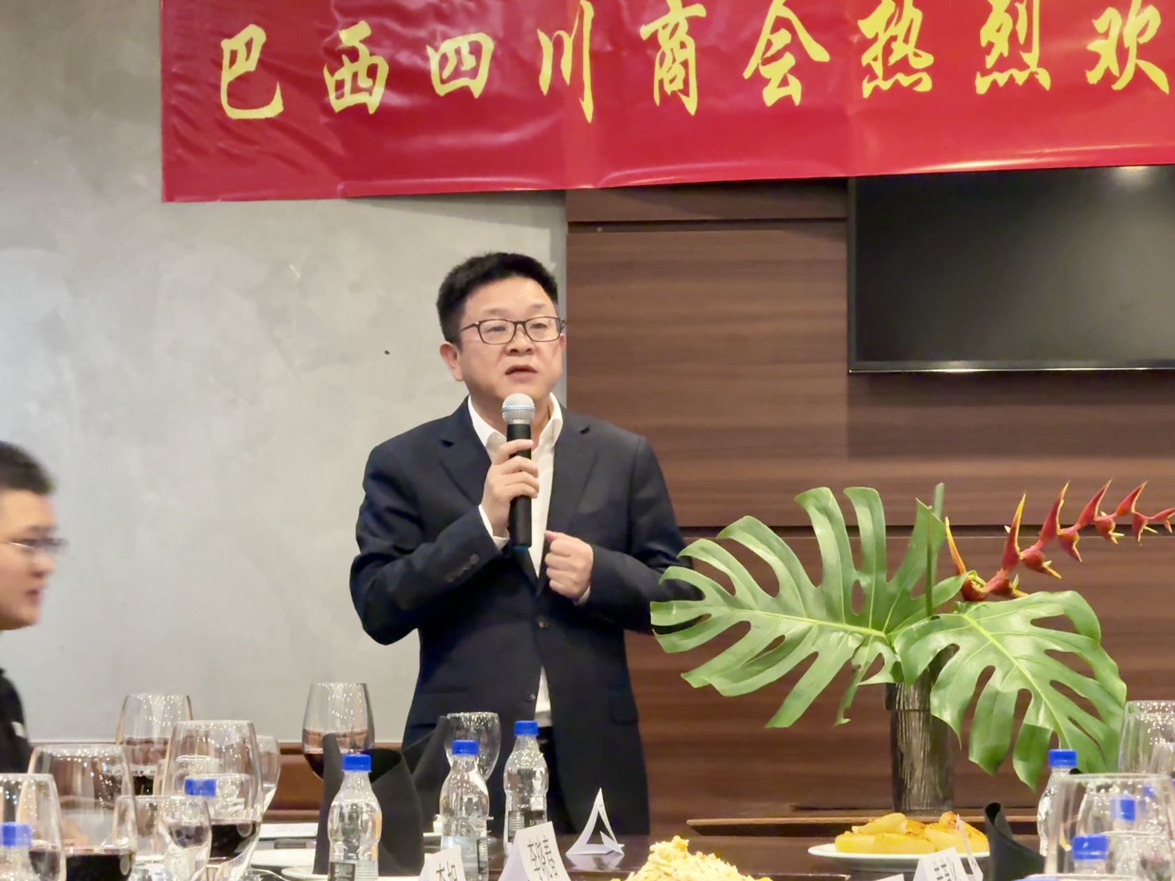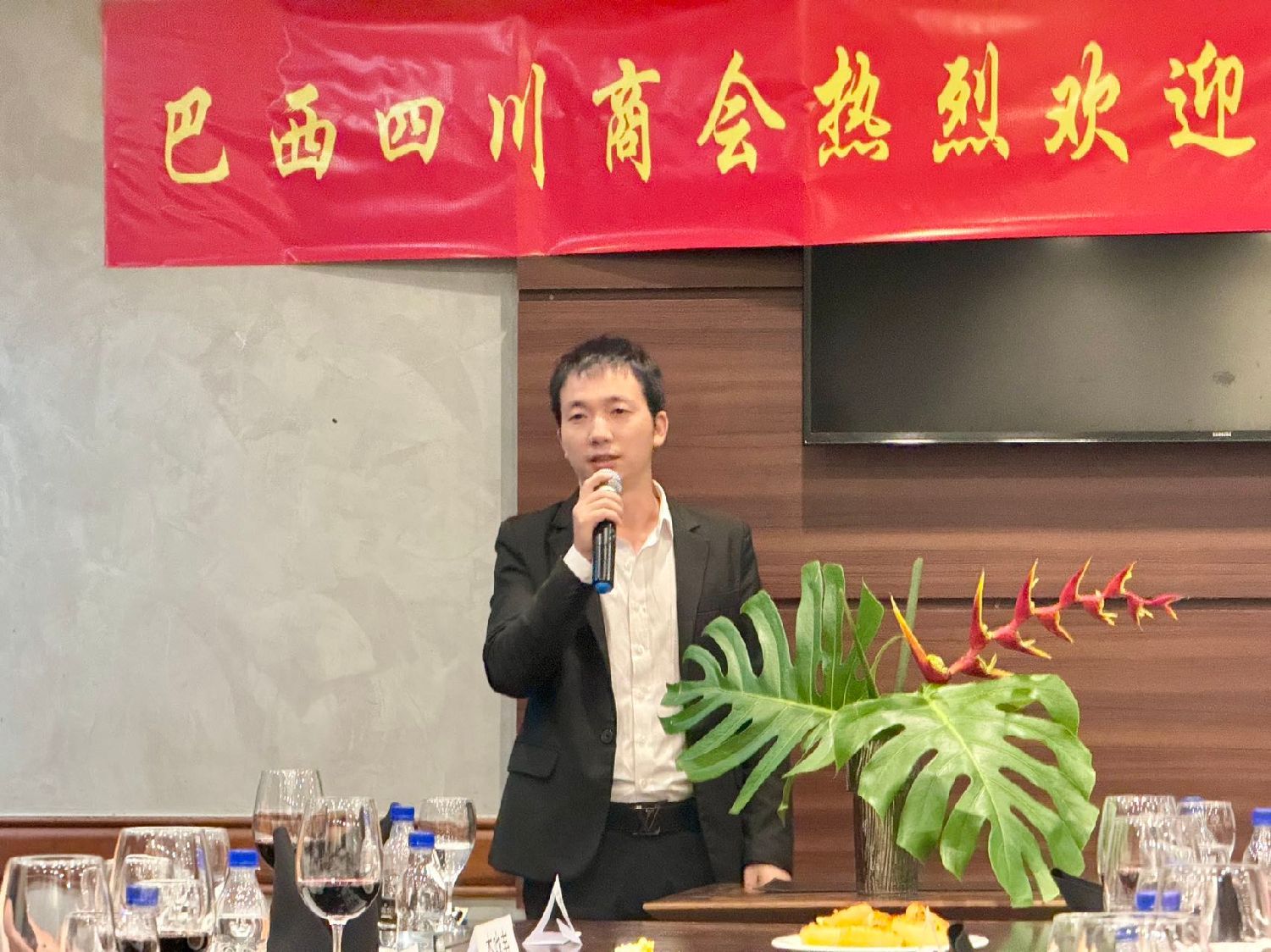 熊宗友代表讲话,表达了与巴西四川商会合作的意愿,希望双方可以共同利用建立的平台,深化在新能源、科技创新和农业等领域的交流与合作,探寻合作机会,实现互利共赢。他还表达了,未来将巴西产品引进中国市场引进家乡四川的美好愿景。