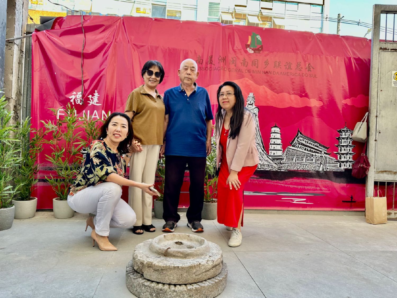 【南美侨报记者庄沂圣保罗报道】5月7日,在位于bom retiro的南美州闽南同乡联谊总会会馆,巴西华人华侨历史文物征集委员会举办文物接收仪式。在仪式上,圣保罗侨胞许广谦、女儿孙媛红和许媛青,共同捐赠了一幅具有60多年历史的珍贵石磨。征集委员会执行主任赵永平、征集协办单位南美州闽南同乡总会会长杨志芳、巴西广东同乡总会会长苏新效及巴西唐韵艺术团团长林筠等出席了接收仪式。
