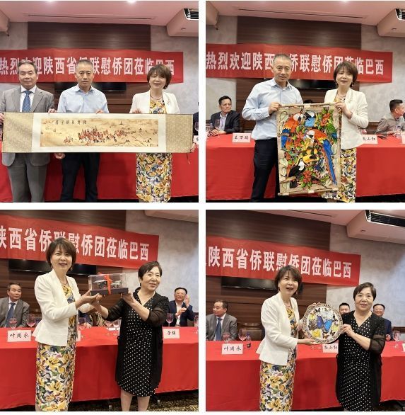 代表团与巴西华人协会、巴西陕西商会互相交换了象征友谊的礼物。代表团成员与与会嘉宾进行了热烈的交流和互动,座谈会在亲切友好的气氛中结束。