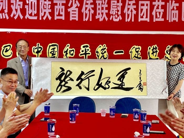 代表团成员为陕西省侨联副主席尚小红、陕西省财政厅副厅长李明怀、榆林市海外联谊会常务副会长吴伟梁、陕西省侨联办公室副主任王媛。巴西中国和平统一促进总会会长李锦辉、秘书长周智荣、巴西陕西商会会长贺清琴、巴西广东同乡总会会长苏新效、南美州闽南同乡联谊总会会长杨志芳、巴西中国退役军人联谊会会长蔡舜龙、巴西大西南同乡总会会长李新城、巴西东北同乡会会长李晶、圣保罗华星艺术团团长李青霞、圣保罗华助中心法律组组长诸诗琦、巴西温州同乡联谊会平阳执行会长苏韩东等参加座谈。