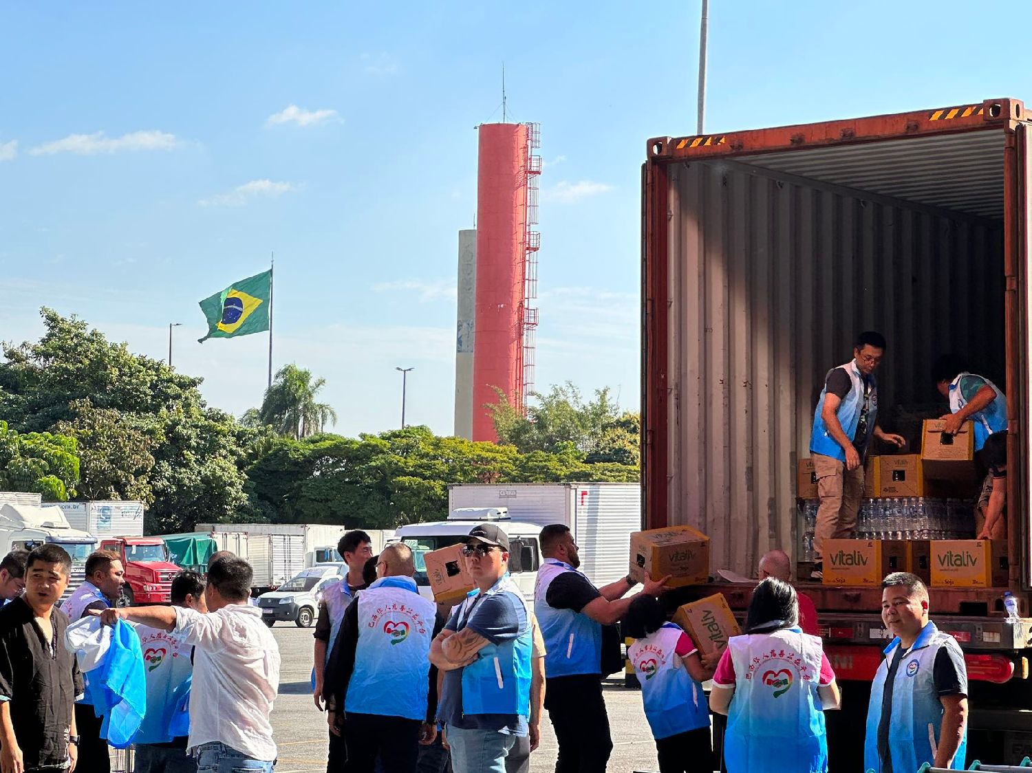 【南美侨报记者庄沂圣保罗报道】5月17日,巴西华人此善公益平台购买了近16吨的救灾物资,发往南大河州灾区。这些物资包括水、食用油、大米、面粉、黑豆、牛奶、清洁用品等。巴西华人慈善公益平台会长陈健、天天华侨教育学校校长汪振宇、巴西江门五邑青年联合会常委副会长陈劲民及慈善公益平台部分成员参与了物资发送仪式。巴西联邦议员Palumbo办公室主任Kenji到场见证。