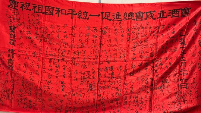 巴西中国和平统一促进总会捐赠的文物是1991年协会成立大会所有出席嘉宾的签名簿,上有罗大诚、杨绍才、陈国伟等前辈的签名;还有张无咎先生担任巴西侨报顾问的聘书,以及上世纪90年代华人开诊所使用的人体穴位模型。