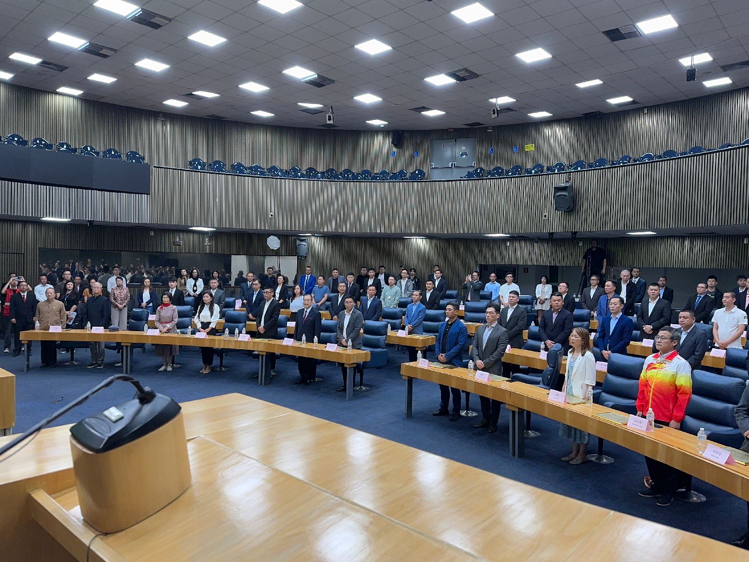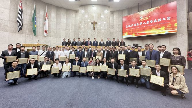 【南美侨报记者庄沂圣保罗报道】5月20日,圣保罗市议会在一楼议会大厅举办仪式,表彰97名在职业和社会活动中做出杰出贡献的圣保罗华人华侨。圣保罗市议员乔治哈托、驻圣保罗总领馆副总领事田玉震、领侨处主任荣强、双边处副主任庄苏、巴西华人协会会长叶周永、巴西金华同乡总会会长章晓红以及其他受表彰的华人代表出席活动。
