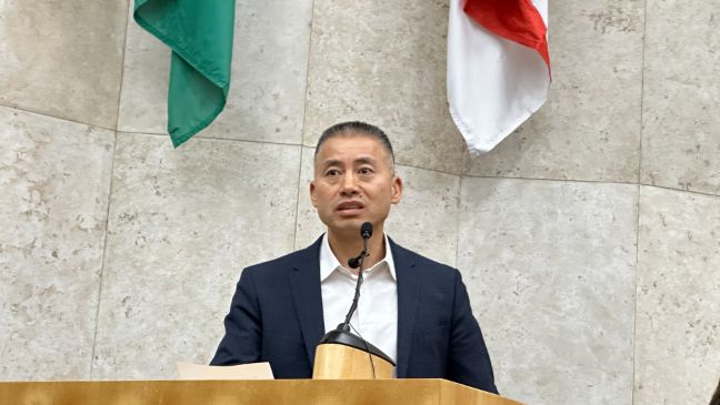 叶周永在致辞中感谢乔治哈托议员对圣保罗侨社和华人社区的支持,并对圣保罗市议会对华人社区的认可和表彰表示感激。他强调了在巴西南大河州洪水灾难中,华人华侨积极行动驰援灾区。他表示,这次的表彰是对中巴建交50周年的庆祝,体现了巴中友好及未来合作的光明前景。