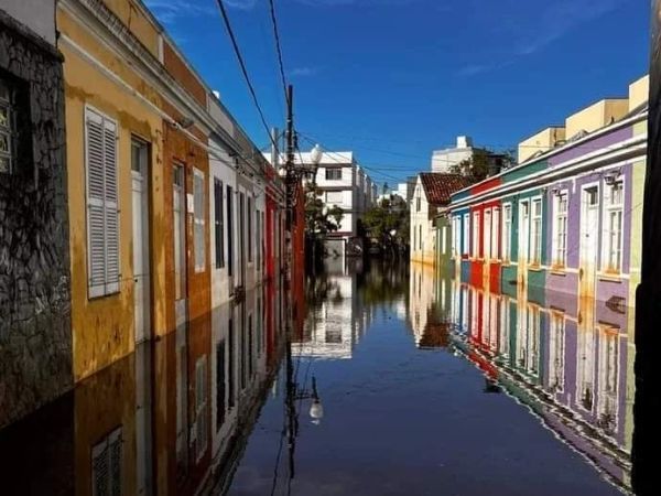 今年4月底至5月初,南大河州遭遇了严重的洪水灾害,大雨连续下了一整个月,南大河州的441个城市,190万居民遭遇不同程度的洪灾影响。蒋嘉禾所在的佩洛塔斯市也受到了洪灾的袭击,连续数十天的暴雨导致该市的重要水道圣贡卡洛运河决堤,该运河位着佩洛塔斯市的南部边缘,给该市的抗洪救灾行动带来了不小的挑战。他描述道,佩洛塔斯的部分低洼区,特别是运河沿岸的区域都已经被淹得差不多了。虽然他所在的学生公寓虽然没有直接受灾,但周围的道路已经积水严重,市内交通状况也受到一定程度的影响,部分地势低洼的区域只有穿着拖鞋才能勉强出行,而车辆已经完全没有办法进入了。