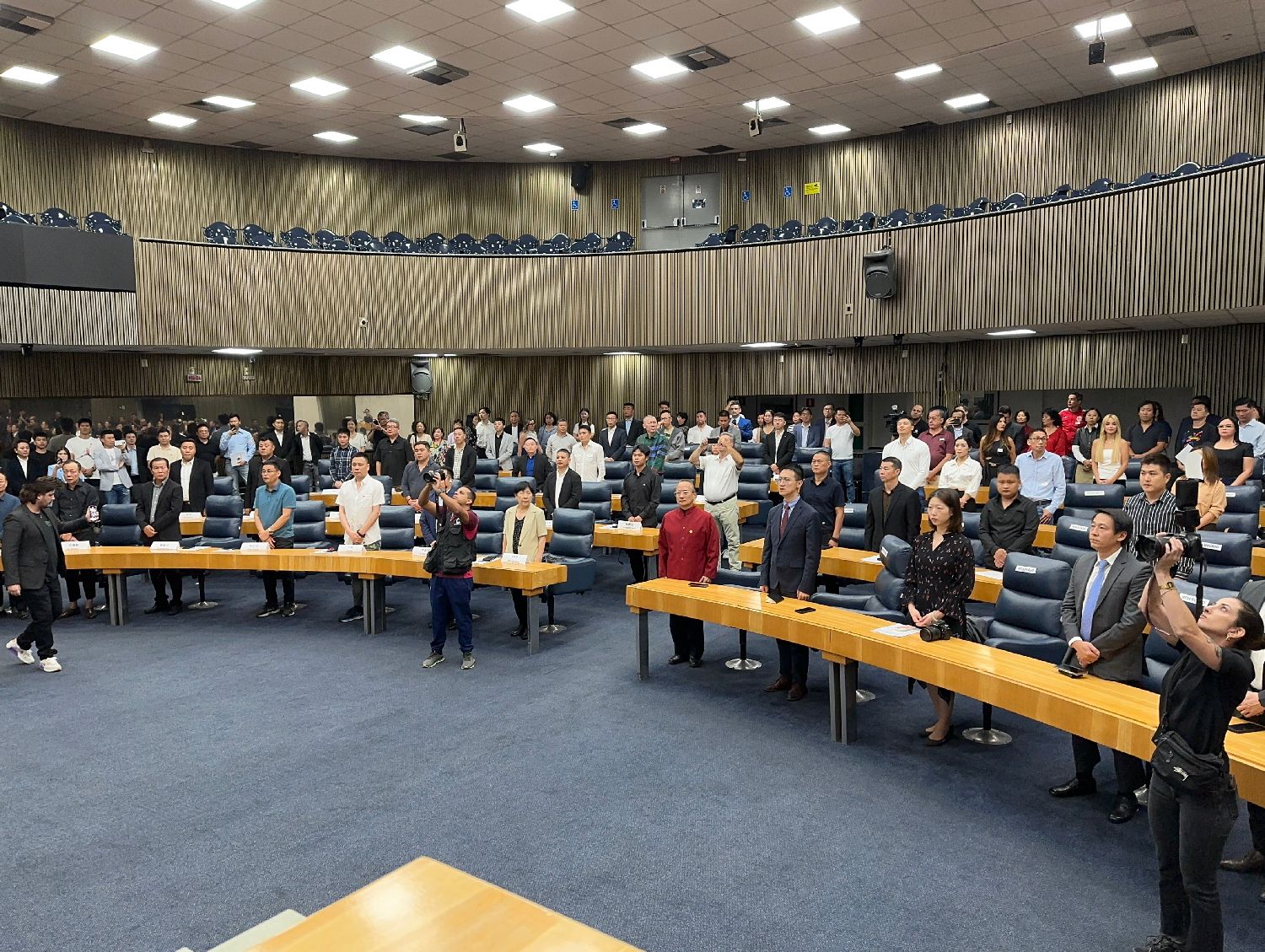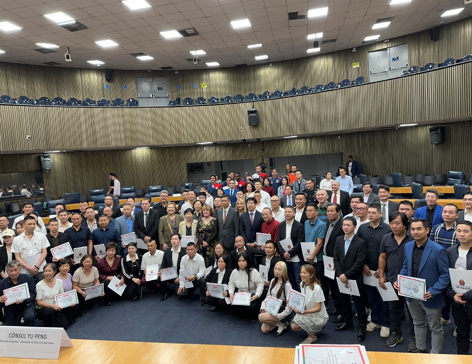 【南美侨报记者庄沂圣保罗报道】5月23日,圣保罗市议会隆重举办巴中议会阵线启动仪式。市议员埃迪尔·萨勒斯(EDIR SALES)、驻圣保罗总领馆总领事余鹏、双边处副主任庄苏、圣保罗市国际关系事务副秘书长玛丽亚·奥克西莉亚多拉·菲格雷多(MARIA AUXILIADORA FIGUEIREDO)、巴西华人协会会长叶周永、Ibrachina总裁罗士豪、市中心conseg主席马里奥·马科比基奥(MARIO MARCOBICCHIO)、巴西华人慈善公益平台会长陈健及圣保罗华人代表100多人出席活动。